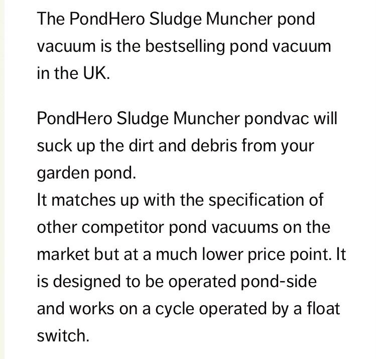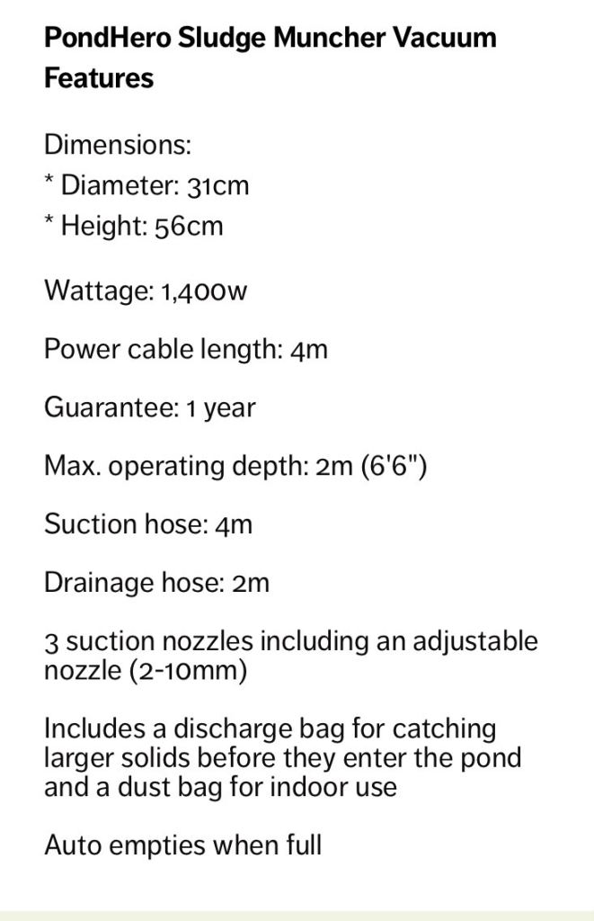 Used once last summer to clean a small pond. No longer required. Unable to deliver, buyer to uplift.