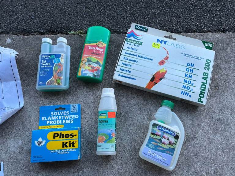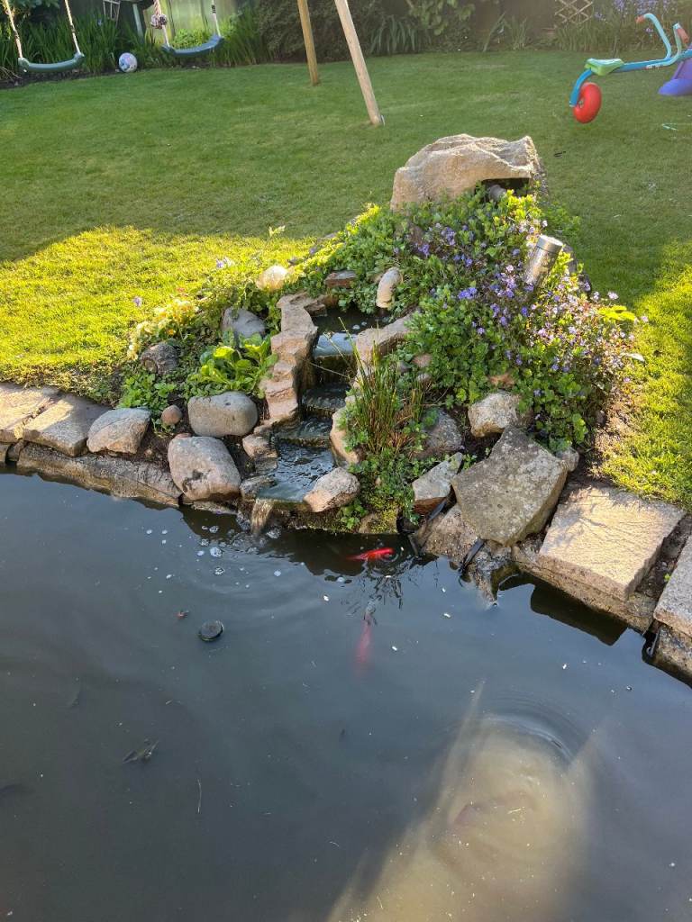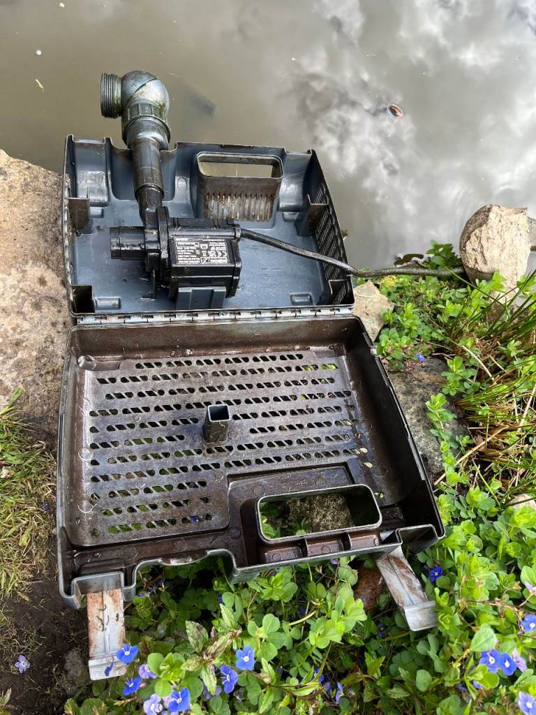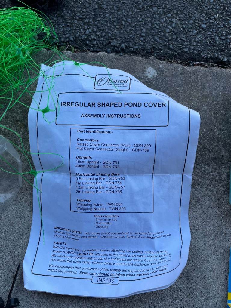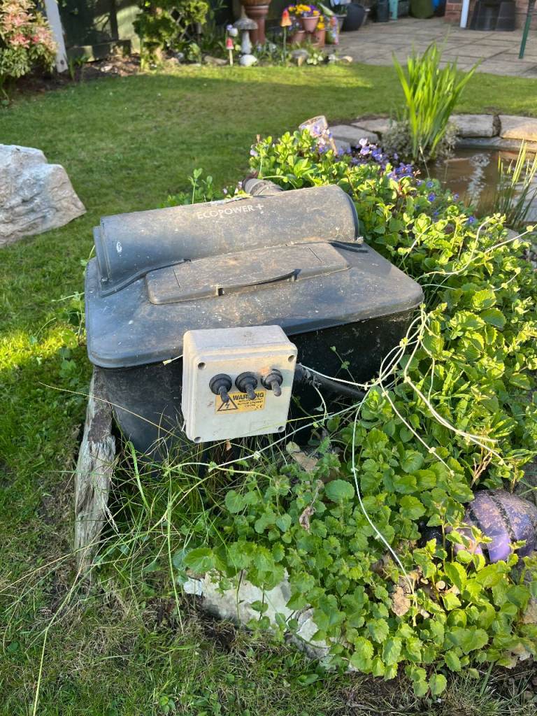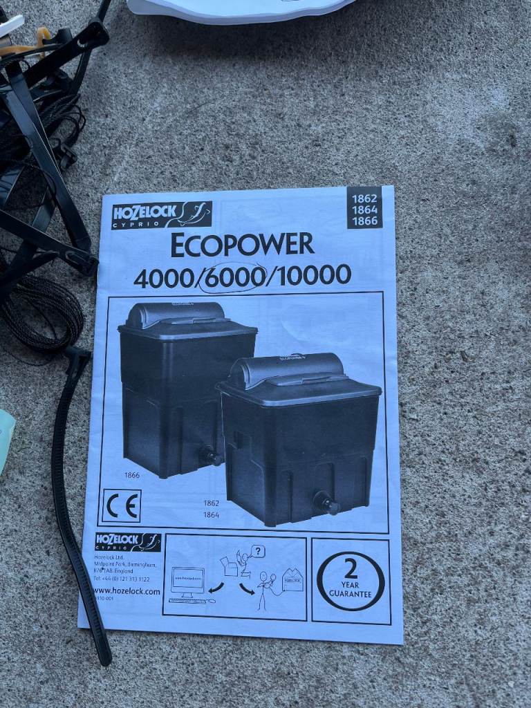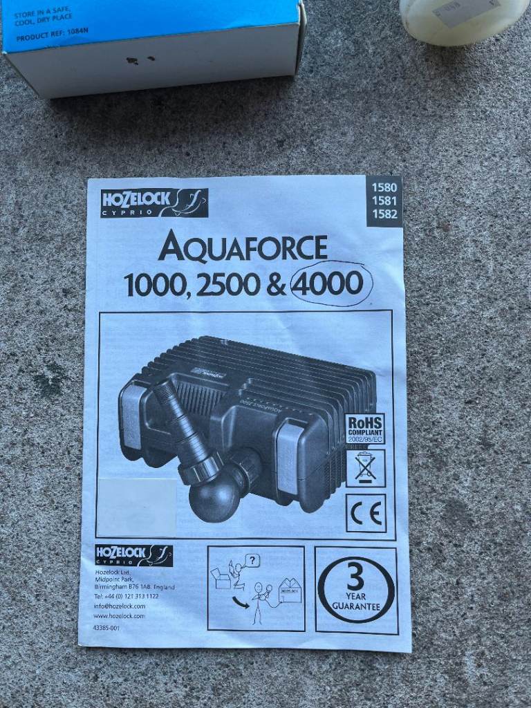 Garden pond pump Hozelock Aquaforce 4000 and Filter with UV Light Hozelock EcoPower 6000. With hozes and valve. Plus pond 3-tier waterfall, Cover to disguise filter housing plus 26 edging stones, large bag of summer food, winter food bag and various consumables and accessories. Also a metal lightweight frame and netting 2600 x 1600 area x 400 high to protect the pond from predators and for child safety.