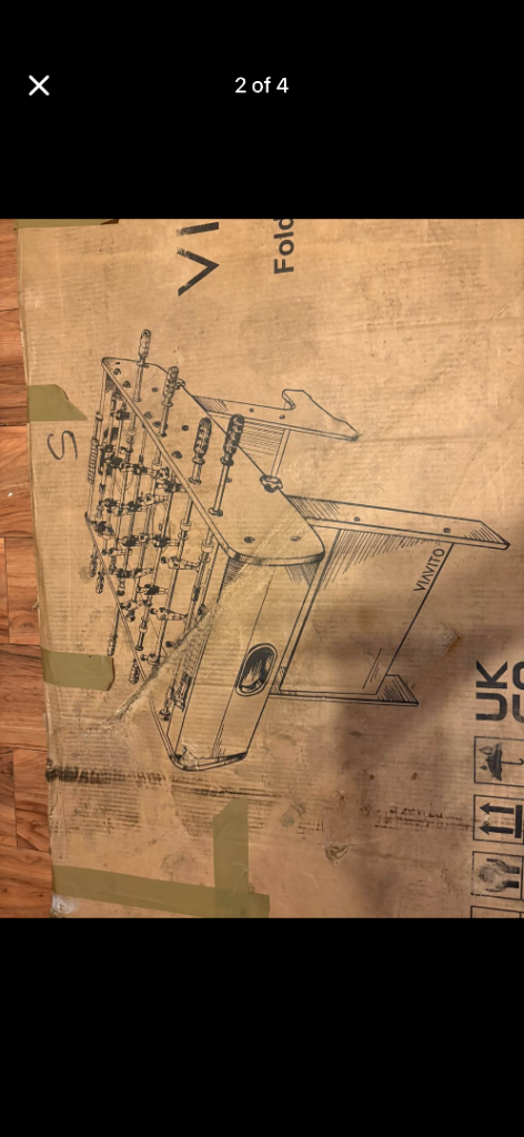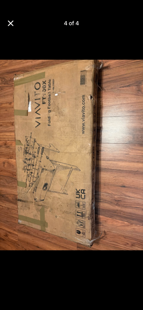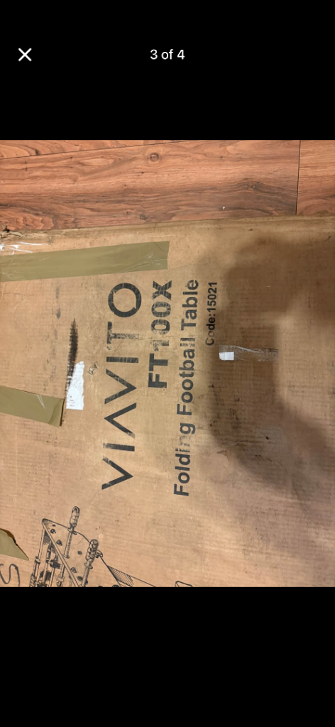 Viavito folding football table new in box just been stored box is a bit worse for wear but the rest is new pick up only it is heavy.