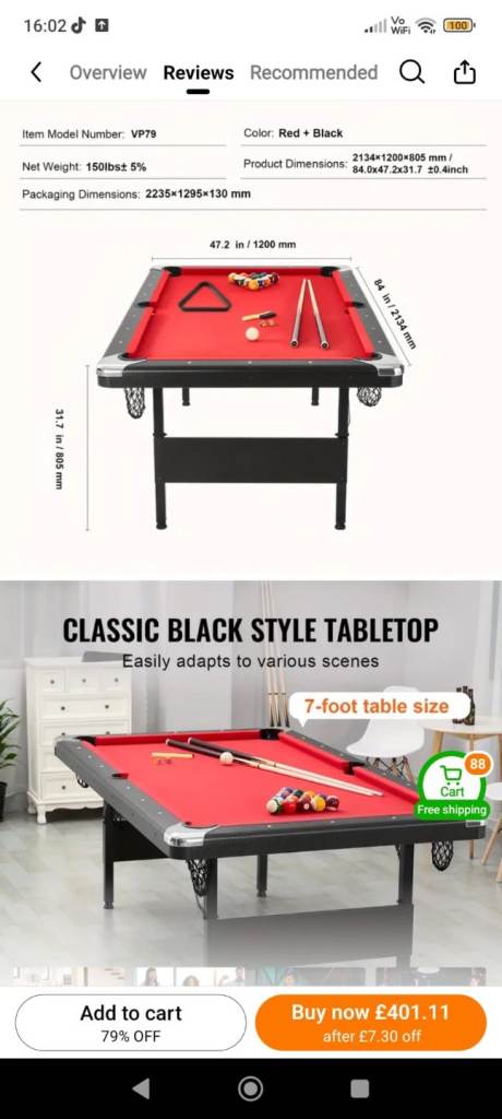 Posting for under a monthPool table