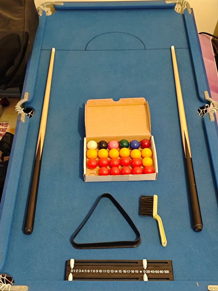 I’m just looking to cover my new felt cost and comes with balls and two cues.