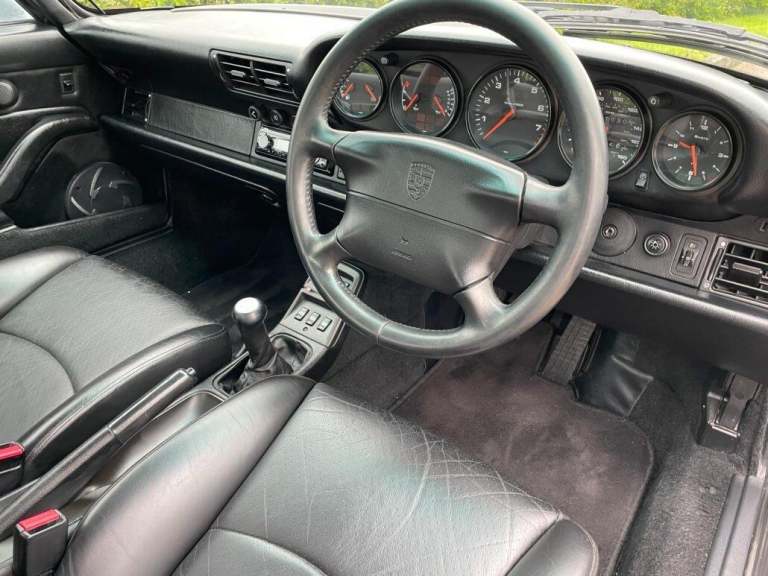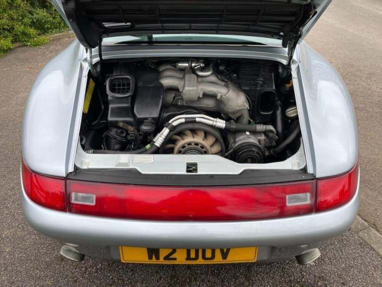 Some say the last of the true Porsches was the 993 ending production in 1998 and the final version of the famous air-cooled engine design.These models were over engineered when profit margins were not the most important agenda for manufacturers.This beautiful Polar silver example was UK supplied with air-con, black leather sports seats, sunroof and Cup alloys.Also being a 1996 model it has the much improved and more powerful Varioram engine producing circa 285 bhp.The original service and handbooks are available including service invoices with main Porsche and specialist dealers on a frequent basis without the large time gaps you often find with classic 911s!She has been cherished and very well maintained with recent 2024 expenditure including;Inspection and major serviceComplete new clutchBorescope and compression checkSuspension and brake replacementNew cam covers and sealsAir con full serviceNew PPFDinitrol cavity protection inc photosOn the road, the 993 is a combination of traditional air-cooled power with confident but stable handling through its thoroughly developed chassis.The gearbox is a slick 6 speed and clutch control easy and light making the whole driving experience very pleasurable and it’s amazing how capable and quick this car still is.There is a superb history file, its original service history book (26 services) and mileage, this is amongst the best available and is sure to rise in value in line with the other iconic models.Supplied fully inspected, serviced with 12 months comprehensive warranty.Cherished number plate not included.