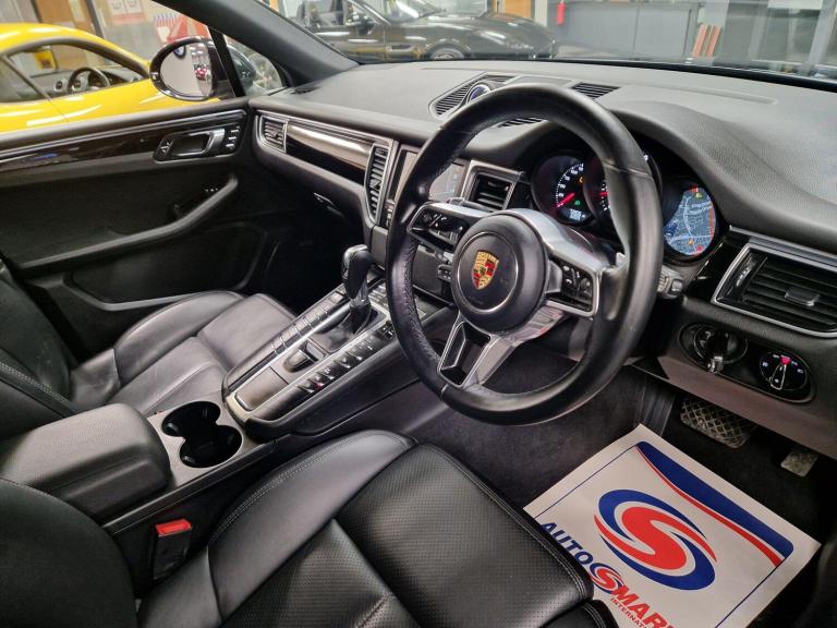 (VEHICLE JUST ARRIVED MORE IMAGES WHEN VALETED) A very nice example of the rarest of the Macan's, the 2.0T petrol version. A good option for those amongst you who are not in need of diesel and are getting a balance of fuel economy, good tax bracket and avoiding the 'clear air zone' charges, yet still having an SUV that's 0 to 60 in under 7 seconds! Colour combo wise you can't go wrong with Jet Black metallic with full black leather interior that has comfort seats with memory package (14-way). Adding to the look there's side-window surround in aluminium with privacy glass, and you are sat on upgrade 20-inch Macan SportDesign wheels. Good owners, good history, good mileage, and 8,000 of optional extras including BOSE, PCM + Nav, heated seats, 20's, mobile phone prep, compass display, and lane assist but to name a few make it all in all a great option. Priced @ 18750! (VEHICLE JUST ARRIVED MORE IMAGES WHEN VALETED)