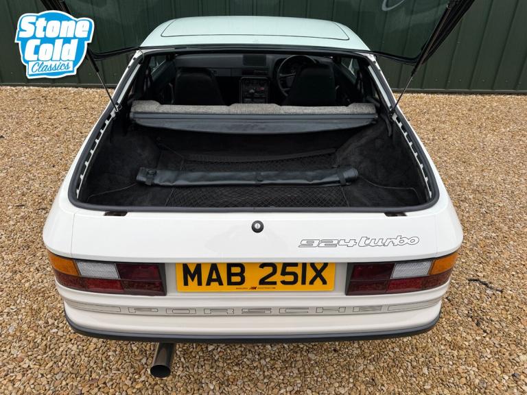 HISTORY An 104,300 mile car with the present owner since 2022 with a file full of history dating back to the 1980s. This lovely 924 Turbo is in remarkable condition both inside and out. A UK right hand drive example, originally supplied by AFN Porsche. With just 6 owners in total, one long term from 1988 to 2013 and a more recently enthusiast owned, the car has clearly been very well cared for. A full ring binder makes up the service history, with invoices dating back to the early eighties, along with many past MOTs and the original stamped service book, showing the car was almost always serviced by Porsche main dealers. Cambelt changed in 2020 (7000 miles ago). There is an invoice on file for recommissioning work in 2013 after being in storage and seeing little use for some years. Since then the car has been very well maintained with the last service carried out in April 2024. Prior to this in 2020 the car received new oil filter, fuel filter, plugs, cambelts, leads, air filter, rear wheel bearings and an alternator belt. A full gearbox rebuild was carried out by Turbo specialist Alan Stokes in 2018. More recently the focus has been on setting the car up well, with the addition of fully adjustable GAZ gold coil over suspension on the front, with new GAZ gold telescopic dampers at the rear and full geo set up and 4 wheel alignment carried out, new OEM brake disks and Brembo pads fitted, high pressure fuel lines, new drive shafts, new alternator, track rod ends, refurbished torque tube bearings (specialist job), custom turbo back wider bore stainless steel exhaust with interchangeable tips on v-band and new brake master cylinder and brake fluid. The car starts with ease and is a huge amount of fun to drive, boosting well and with the improved handling, now feels a very capable Porsche. The current MOT is valid until August 2026 with no advisories. SPECIFICATION Alpine White over Gabon Grey with factory pinstripe and unmarked Grey Berber cloth interior, electric windows and mirrors, removable sunroof with sunroof bag, Blaupunkt radio, fog lights. CONDITION In wonderful condition throughout, the paint is uniform and bright, with no dings, dents or scratches. See our Youtube video for a full condition report. The wheels are virtually unmarked, the interior is in fantastic condition with just a few cracks to the dash, the seat material is superb is the steering wheel. Under the bonnet is very clean as is the boot complete with its fabric parcel shelf, get you home spare, jack and tool kit. We have three keys. Tyres are all Continentals with plenty of life. We have a huge file of paperwork and the book pack. This are is over 40 years old and as such is tax and MOT exempt and ULEZ compliant. WHY BUY FROM US? Hand picked cars from private sources, prepared to a very high standard. All cars indoors. A friendly buying experience no hard sells or admin fees. Five star customer reviews on Google and Facebook. All dealer facilities offered including nationwide delivery & part exchange. Central location 10 mins off the M40 J11. Viewings by appointment only