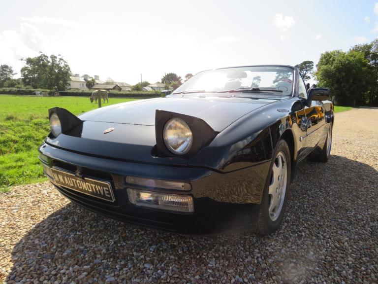 1991 Porsche 944 S2 3.0 Convertible. Supplied new by AFN Guildford | Porsche Certificate of Authenticity | Approx. 130,000 miles A good example of the final and most developed iteration of the transaxle 944 -- the S2 3.0 Convertible -- presented in Black paintwork with a contrasting white Porsche script interior.Originally supplied new by AFN Guildford, this car represents the pinnacle of 944 evolution, combining everyday usability with timeless Porsche design. Key features include: 3.0-litre naturally aspirated four-cylinder engine (the largest four-cylinder production engine of its era) Electric convertible roof Electric windows & central locking Alloy wheels LCD clock (still functioning) Half-cloth Porsche script seats in contrasting white trim Documentation is extensive, comprising a Porsche Certificate of Authenticity, stamped service book, original handbook pack, and a substantial history file of invoices.The car has been subjected to a speedometer change, with the true mileage verified at approximately 130,000 miles via MOT records and service documentation.Most recently, the car passed an MOT valid until 10th August 2026. This 944 S2 Convertible offers a compelling blend of open-top motoring and classic Porsche engineering -- a well-documented and genuine example of one of the marque's most charismatic modern classics.