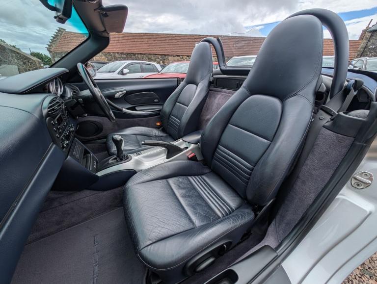 Exceptional example garaged for over a decade 2002 PORSCHE BOXSTER S 3.2 986 CONVERTIBLE £10950 40,600 miles Arctic Silver Metallic Same owner for last 16 years Dry stored in a garage Electric soft top roof Heated leather seats 248BHP engine Xenon headlights, headlights washers, electric backrest adjustment, CD changer, electric mirrors, sports brakes AA Cars Motor Dealer Free 3 month warranty included Free 12 months AA Breakdown Cover Finance options available Part exchange welcome Rely Motors Ltd, Bankhead Buildings, Kinglassie, KY5 0UH relymotors.com 01592770834 [Phone number removed] [Email address removed. Click Email button to contact us.]