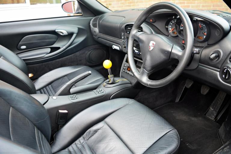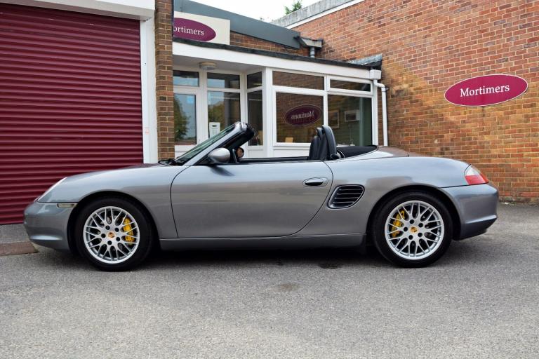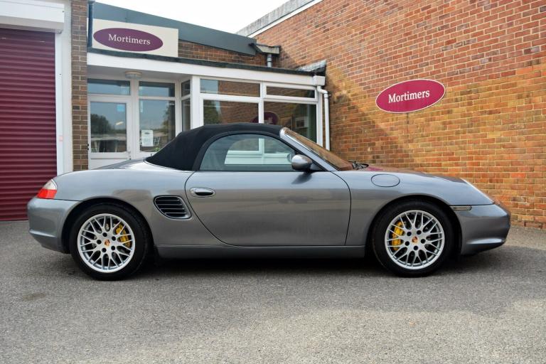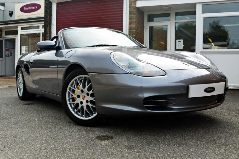 .Seal Grey with Black Leather, 17'' Sport Classic Alloys, Air Conditioning, JVC KW-R520 Stereo Unit, Trip Computer. A really clean example of a 986 Boxster. Branded tyres, clear headlamps, spotless alloys, brilliant paintwork, a superb MOT history - are all signs of a car that has been loved all its life. The service history backs this up with no less than 14 stamps in the book, 12 of these from Porsche Main Dealers. 986s are getting harder to buy in this condition as they get older, this car was a real find and Mortimers are proud to put their name to it. PS - if you don't like the gear knob, we will change it back to standard - we think it's quite fun!.