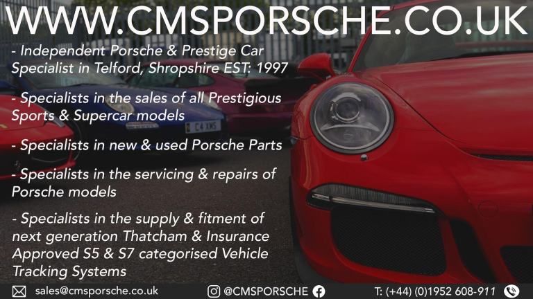 Here at cmsporsche.co.uk, we are an independent family-run business of nearly 30 years (EST: 1997), and we provides a personal and specialised main dealer quality service, at a fraction of the cost...Since being established, CMSPORSCHE.CO.UK has built a strong reputation within the West Midlands, for providing a high quality and loyal service that always does best by its customer. Because of this, we have a nationwide customer base with customers in all different corners of the UK and with multiple returning customers who are based over and on the continent and hence delivery is available on nearly all cars...We hold some of the most exclusive stock of vehicles for sale in the West Midlands, and we have new and fresh stock rotating on a daily basis.
