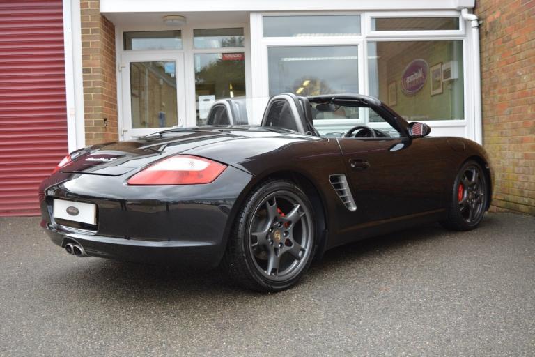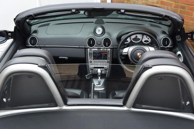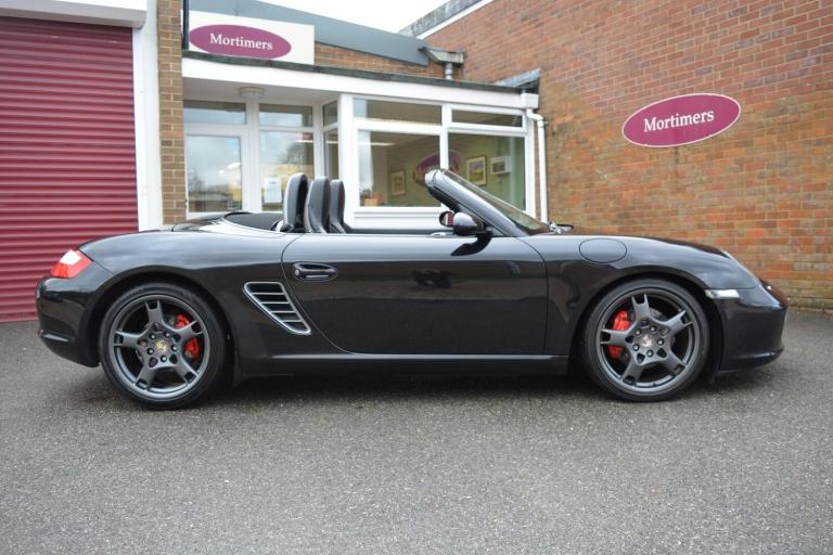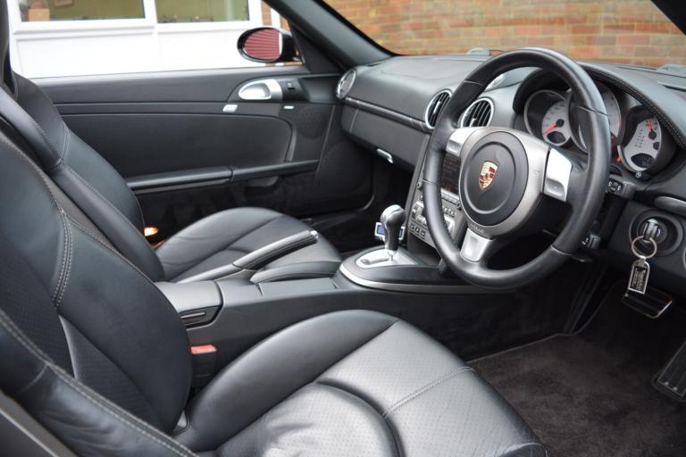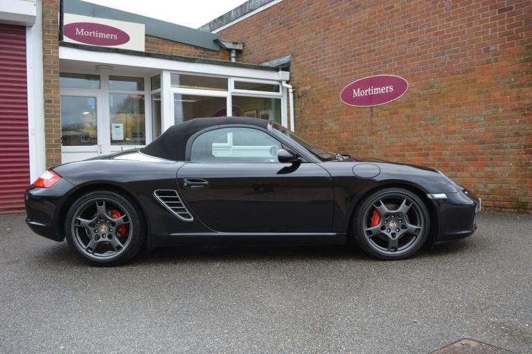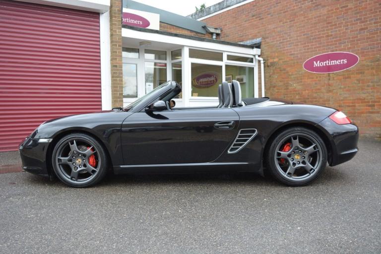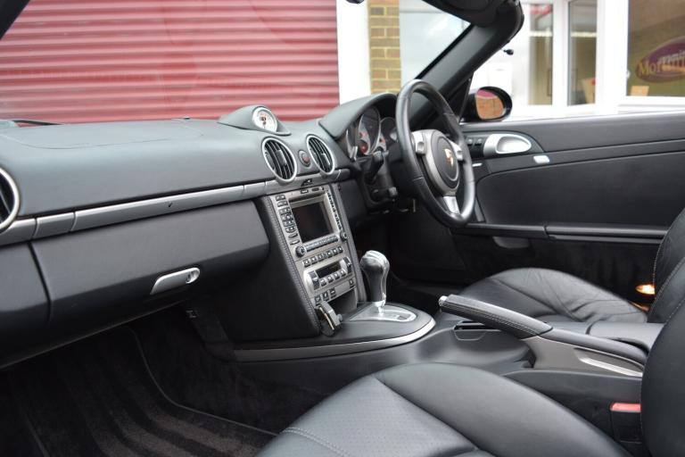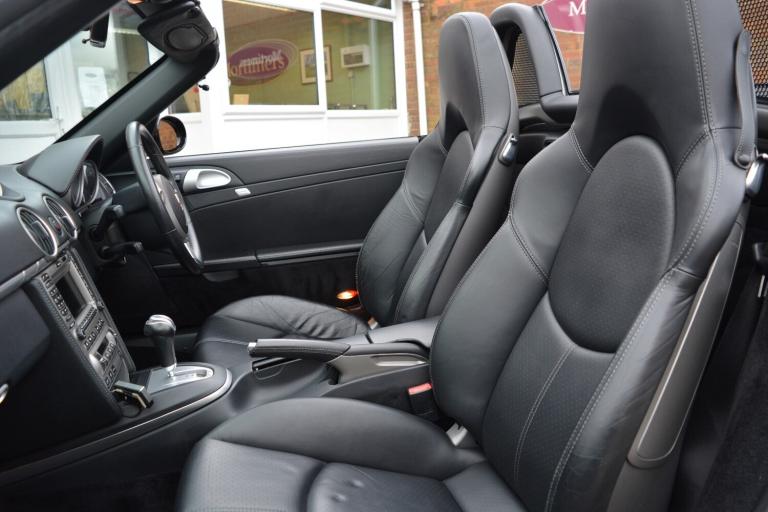 .Basalt Black Metallic with Full Black Leather Interior Extended To Dashboard and Doorcards, 19'' Carrera S (Lobster Claw) Alloy Wheels, Porsche Stability Management, Porsche Communications Management with Satellite Navigation Module (Europe Package), Porsche Active Suspension Management (PASM), Hard Shell Sports Seats, Sport Chrono Plus Package, 3 Spoke Sports Steering Wheel with Tiptronic Controls, 5 Speed Tiptronic Gearbox, Sport Mode, Fully Automatic Air Conditioning, Bose Surrond Sound Upgrade, Wind Deflector Package, Trip Computer, Xenon Headlamps with Powerwash, Cruise Control, Trip Computer. A hugely specified 987 Boxster S that has covered a mere 62,000 miles from new. This particular era of Boxster has been our most popular selling car over the past 14 years by a country mile, and this is because there is absolutely nothing to rival the value of these cars on the road today. The sheer driving enjoyment that can be experienced when driving this model is second to none, and indeed is a better car to drive than the iconic 911..Electric engine and trunk lid release, Multi function display, On board computer, Outside temperature gauge, Rev counter, Variable PAS, Porsche stability management (PSM), 2 speed front wipers + intermittent wipe, Aspherical driver's exterior mirror, Automatically extending rear boot spoiler, Body colour bumpers, Body colour door handles, Body colour electric/heated door mirrors, Coming home function, Electric heated rear glass window, Electric windows one touch open/close, Front air dam with integrated air inlets, Front fog lights, Green tinted glass, Heated washer nozzles, High level third brake light, Rear window antenna, Under-carriage cover, Active carbon filter, Aluminium Look gearknob, Coat hook integrated into back seat, Door entry guards with 'Boxster S' logo, Footwell illumination, Front centre console storage, Front centre console with 'Boxster S' logo, Front door storage bin, Front headrests, Front passenger seat isofix location point, Height/reach adjust steering wheel, Integrated double cupholders, Interior roof lining, Lockable glovebox, Luggage compartment lid front and rear in aluminium, Rear centre console + storage compartment, Storage pockets in backrests of front seats, Storage shelf with net on engine lid, Sunvisors with illuminated vanity mirrors, 3 point automatic seatbelts, ABS+ABD, ASR, Deformation zones front and rear, Driver and passenger airbags, Front seatbelt pretensioners + load limiters,