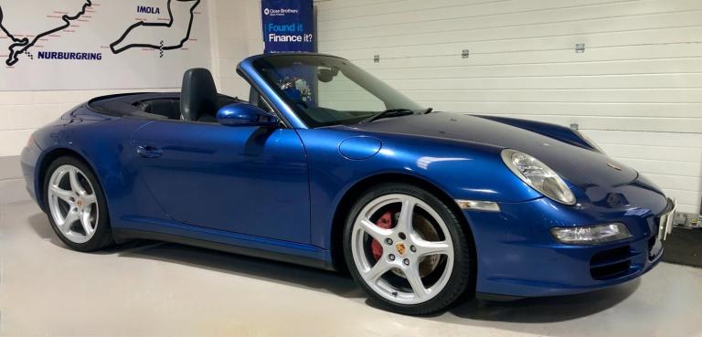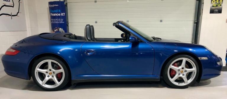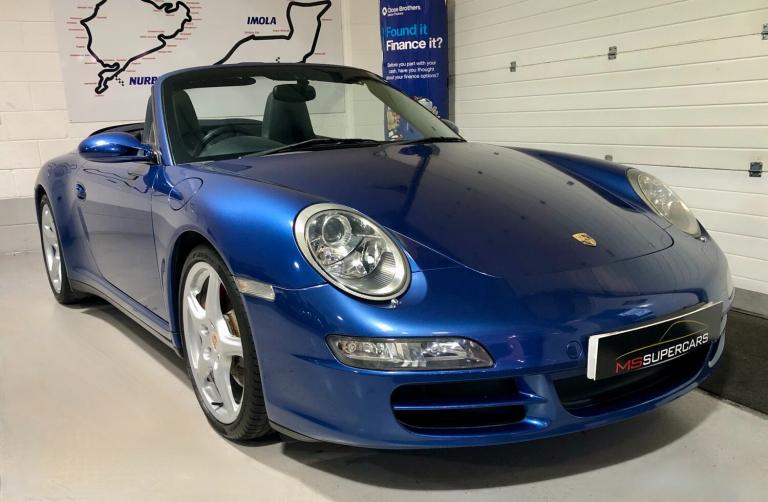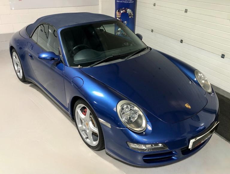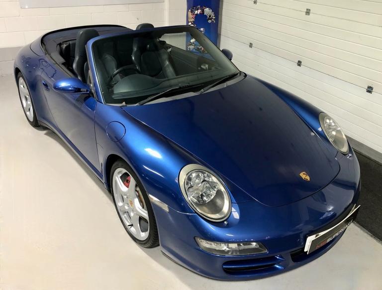 2006/06 Manual. 103120 miles. Here at MS Supercars we are delighted to offer this absolutely stunning Porsche 997 Carrera 4S Manual Convertible. This fantastic example is finished in beautiful Cobalt Blue paintwork and is complemented with full metropole blue leather interior and navy blue hood. Options on the car include the following : 19 INCH CARRERA CLASSIC ALLOY WHEELS (FULLY REFURBISHED) PORSCHE COLOUR CRESTED WHEEL CENTRE CAPS, PCM SATELLITE NAVIGATION, TELEPHONE MODULE, MULTI FUNCTION STEERING WHEEL, REAR PARK ASSIST, XENON HEADLIGHTS, HARD BACK SPORTS SEATS, HEATED SEATS, CRUISE CONTROL, WHITE DIALS, AUTO DIMMING REAR VIEW MIRROR, AUTO CLIMATE CONTROL, REAR SPOILER, PASM (PORSCHE STABILITY MANAGEMENT SYSTEM) PSM (PORSCHE STABILITY MANAGEMENT) and PORSCHE CARPET MATS. This car has a fantastic service record with 9 services carried out all by Porsche main dealer and Porsche Specialist throughout and also has a pile of invoices for all work carried out over he years The car also has an MOT until November 2026 with nom advisories. This really is a beautiful example with just 2 owners and the last owner since 2011. All part exchanges will be considered and finance is available subject to status. Plesse do not hesitate to contact us regarding this or any other of our cars we currently have on offer.