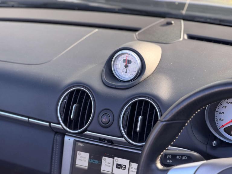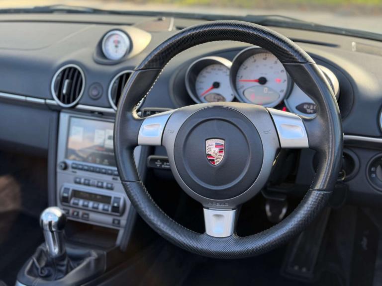 This stunning Porsche RS60 Spyder is presented in Carrera GT Silver with a Black leather interior option which looks stunning. The RS60 is a rare limited edition which has a lot of extra bits over the standard Boxster 3.4S; increased power to 303 BHP,10mm wider wheel base,Lower front spoiler,19' Sport Design alloy wheels fitted,Sport seats,(PSE)Porsche Switchable Sports Exhaust with chrome tailpipes,Red rear lights,Black windscreen surround,3 pod stand up instrument cluster,Full extended black leather seats,Stainless door sill guards, (PASM)Porsche Active Suspension Management,(PSM)Porsche Stability Management. This RS60 has a full approved Porsche service history and has recently undergone a full service and health check. When the previous owner purchased the car from Porsche Centre Bournemouth he opted for apple car play screen upgrade at a cost of over £2000! The Porsche will be supplied with a 12 months MOT, both keys and all the original book packs including lots of invoices for all the services and works carried out! Part exchanges are welcomed and viewings are via appointment only as it is just myself here!