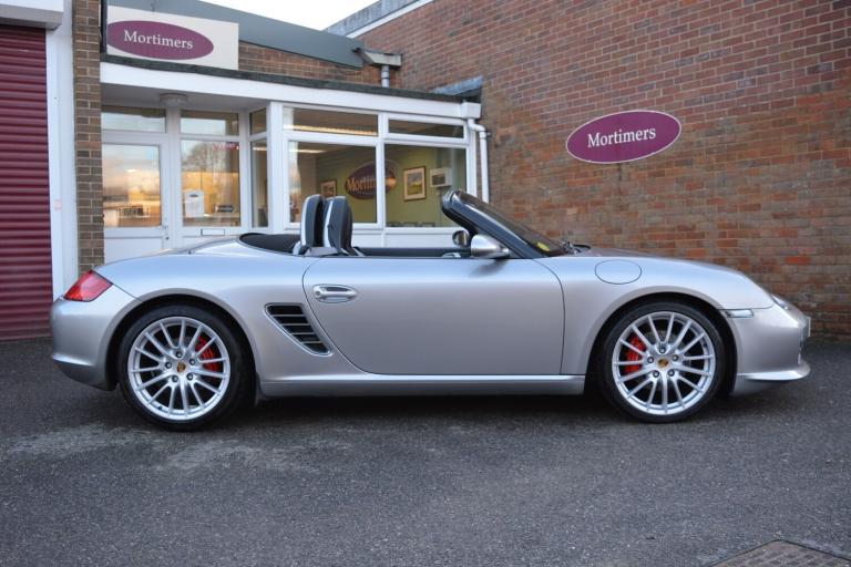 .GT Silver with Dark Grey Leather extended to dashboard and door cards, 19'' Sport Design Alloys, Sports Exhaust System, Rear section of centre console painted, Painted Sports seat backrest, Silver seat belts, Red tail lights, Automatically dimmable interior and door mirrors, Rain sensor, Heated Seats, Hard Shelled Sports Seats, Automatic Speed Control, PASM, Porsche Stability Management, Xenon Lighting System, Park distance control, BOSE sound package, number 764 of 1960 built. Where to start with this rare and beautiful RS60 Spider? We have had the pleasure of stocking a number of these very special cars over the years but this without doubt ranks as one of the very best of them. A three owner car that we have purchased directly from the last owner, it boasts an impeccable service history having been serviced six times by Porsche and four times by Porsche specialists in its life. The last owner (since 2019) was a fastidious chap and the car arrived with us with a file full of carefully collated paperwork. Recent works include replacement gear cables, a new clutch (including the important RMS and IMS seals) new AC pipework and four new Michelin PS2 tyres. The bodywork is immaculate and the car drives superbly - it even seems to have retained that new car smell as you open the door. A rare opportunity to purchase one of the nicest limited edition Porsches that we have seen..Brake pad wear sensors front and rear, Electric engine and trunk lid release, Multi function display, On board computer, Outside temperature gauge, Variable PAS, Porsche Active Suspension Management (PASM), Porsche stability management (PSM), 2 speed front wipers + intermittent wipe, Aspherical driver's exterior mirror, Automatically extending rear boot spoiler, Body colour bumpers, Body colour door handles, Body colour electric/heated door mirrors, Brushed stainless steel twin exhaust pipes, Coming home function, Electric heated rear glass window, Electric windows one touch open/close, Electrical soft-top actuation with comfort window lowering + closing of side windows, Front air dam with integrated air inlets, Front fog lights, Front lip spoiler, Green tinted glass, Heated washer nozzles, Metallic paint, Sports exhaust system, Stainless steel door entry guards, Under-carriage cover, Water repellent side windows, Windscreen with grey top tint, 3 spoke leather sports steering wheel, Active carbon filter, Aluminium gear lever, Carrera red/black carpet, Carrera red/black floor mats,