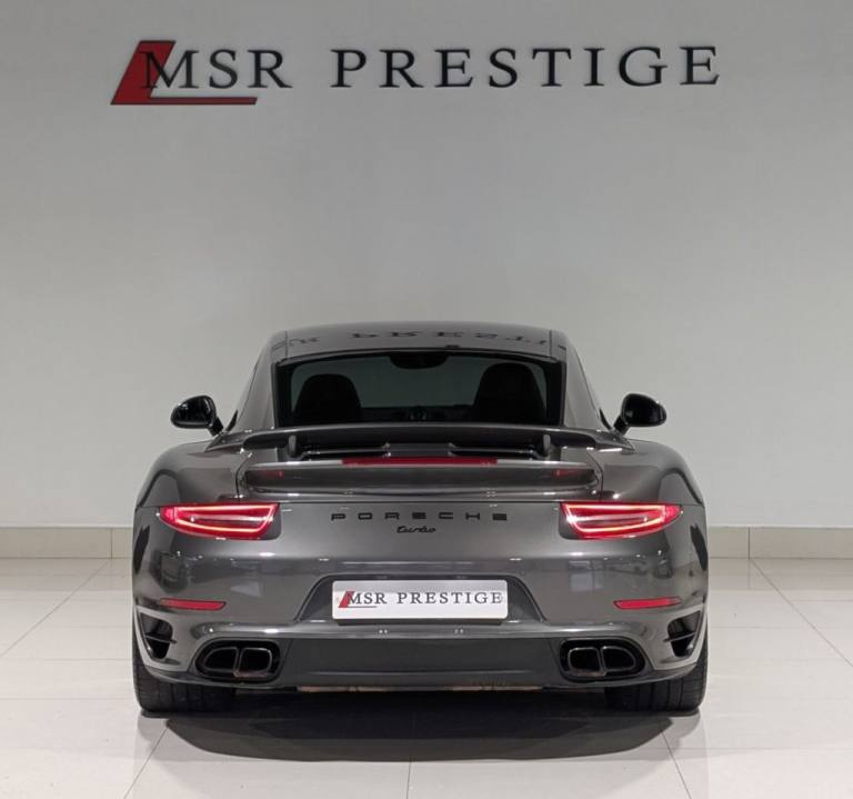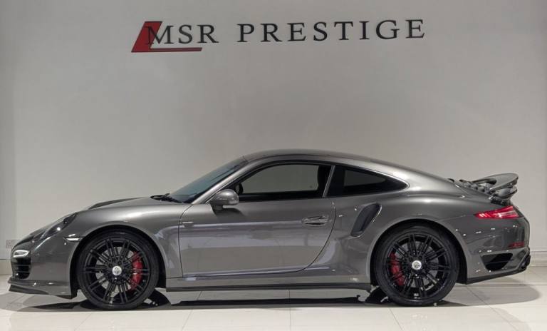 MSR Prestige are delighted to offer this stunning Porsche 911 3.8T 991 Turbo Coupe 2dr Petrol PDK 4WD, finished in Agate Grey Metallic and beautifully complemented with a luxurious Black Leather Interior. This immaculate example comes with Full Porsche Main Dealer Service History with the following intervals: 5.8K, 10.4K, 17.3K, 29.2K, and 37.1K miles, showcasing the exceptional care and maintenance it has received. This vehicle comes fully equipped with style, performance, and convenience features to suit your needs, including Bi-Xenon Headlights, Daytime Running Lights (DRLs), Park Assist, Electric Folding Mirrors, Sports Chrono Package, Power Steering Plus, 20" 911 Turbo Alloy Wheels, Heated Seats, 14-Way Fully Electric Seats, Porsche Crest Embossed Headrests, DAB Radio, and Telephone Module. Delivering the perfect balance of iconic design, blistering performance, and everyday usability, this 911 Turbo represents the very best of Porsche engineering. At MSR Prestige, we take pride in offering high-quality vehicles that combine style, performance, and comfort. Our carefully selected cars are designed to deliver an exceptional driving experience, whether youre commuting, cruising, or embarking on a road trip. Competitive Finance Available Extended Warranties Available Part Exchange Welcome at Trade Price Nationwide Delivery Available Please note: the number of keys for each vehicle will be confirmed with a sales representative. Some vehicles may include tasteful aesthetic upgrades such as de-chrome, wrapping, caliper paint, or exterior styling modifications (splitters, side skirts, spoilers, rear diffusers, etc.). As expected with any pre-owned vehicle, minor cosmetic imperfections such as small scratches or stone chips may be present. Vehicle information and specifications are provided to the best of our knowledge—please speak to a sales representative to confirm details. Visit MSR Prestige today to experience this outstanding Porsche 911 Turbo..19in Alloy Wheels - Turbo II, 385 Watts Total Output, 6.5in TFT- Colour Display Touchscreen, ABD - Automatic Brake Differential, ABS - Anti-lock Brake System, ASR - Anti Slip Regulation, Additional Storage Space Behind Rear Seats, Airbag - Driver, Airbag - Head, Airbag - Passenger, Airbag - Passenger Deactivation Switch, Airbag - Thorax in Seat Side Bolsters, Alarm System, Aluminium Door Panels, Aluminium Front Lid, Anti-Theft Wheel Protection, Automatic Air Conditioning, Automatically Dimming Exterior and Interior Mirrors, BOSE Surround Sound System, Brake Calipers - Red, Central Locking with Remote Control, Chrome-Plated Turbo Logo, Clothes Hooks on Seat Backrests, Cupholders, Daytime Running Lights - LED, Deformable Front and Fear Aprons with Integral Alloy Bumpers Mounted on Impact Absorbers, Door Brakes with Three Rest Positions, Door Handles - Bow-type, Door Mirrors - Electrically Adjustable and Heated, Electric Windows - Lifts with One Touch Operation, Engine Immobiliser, Enhanced Porsche Stability Management - PSM, Extended Head Restraints Integrated into the Front Seats, Footwell Illumination, Front Apron Moulding with Integral Air Intakes, Glove Compartment - Lockable, Green Tinted Heat-Insulating Glass, Heated Rear Screen, High-Level Third Brake Light - LED, Illuminated Vanity Mirrors in Both Sun Visors, Instrument Cluster with Central Rev Counter and Dot-Matrix Display with Multi-Purpose Field, Instrument Dials Aluminium-Coloured, Integrated Interior Lighting Concept with Stepless Dimming, Interior Orientation Lighting and Reading Light, Key Remote Luggage Compartment Lid Release, MSR - Motor Slip Regulation, McPherson-Strut Suspension with Anti-Roll Bar at Front, On-Board Computer, PASM - Porsche Active Suspension Management, PCM - Porsche Communication Management - Include Navigation, PTM - Porsche Traction Management, PVTS - Porsche Vehicle Tracking System, Pad-Wear Sensors on Each Brake Pad, Park Assist - Rear, Porsche Side Impact Protection - POSIP, Power Assisted Steering with Variable Steering Ratio, Power Release Button for Engine Release, Power Release Buttons for Luggage Compartment, Pre-Tensioners and Force Limiters at Front, Preparation for ISOFIX Child-Seat Mounting with Switch-Operated Front Passenger, Preparation for Roof Transport System, Radio - Twin RDS Tuner and Single CD-DVD Drive, Rain Sensor, Rear Lid with Separation Edge and Additional Automatic Pop-up Rear Spoiler, Roof Lining in Alcantara, Seats - Split-Folding Rear, Se
