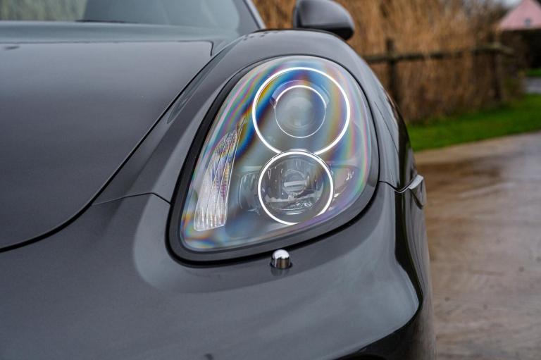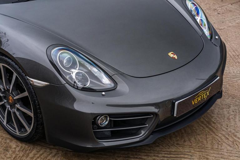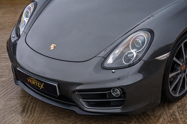 OVERVIEW Before you skim, pause. This is one of those cars that deserves more than a glance. Finished in Agate Grey Metallic, this 981 Cayman is Porsche restraint at its best. Subtle, timeless, and perfectly suited to the Cayman’s shape. The paintwork presents beautifully, with crisp shut lines and strong reflections that immediately point to careful ownership. With just 35,587 miles, the condition fully supports it. It sits on 20 inch Carrera Classic wheels wearing correct Michelin Pilot Sport tyres, giving it a clean, factory correct stance. Nothing overdone, nothing aftermarket, just a Cayman exactly as it should be. Inside, the cabin feels tight, clean and genuinely cherished. The partial leather seats remain supportive with minimal wear, the steering wheel feels superb in the hands, and every control operates with that reassuring Porsche solidity. Specification is a real highlight. PASM gives it genuine breadth between comfort and control, Sport Chrono Package Plus sharpens the car noticeably, and the PDK gearbox is outstanding, smooth when cruising and instant when driven properly. PCM with extended navigation, BOSE Surround Sound, Bi Xenon headlights with dynamic cornering, heated seats and cruise control complete a carefully chosen factory specification. On the road, this is where the 981 shines. Naturally aspirated, beautifully balanced, and full of feedback. No turbo lag, no artificial noise, just response, revs and a soundtrack that builds exactly as it should. It feels tight, intuitive and confidence inspiring, even on short drives. This is not just a good Cayman. It is a proper one. OWNERSHIP & HISTORY Supplied new by Porsche and owned by just two previous keepers, this Cayman has enjoyed settled, appreciative ownership. Mileage sits at a sensible 35,587 miles and the car feels mechanically healthy and properly exercised. The service history is a major strength, with Porsche main dealer servicing throughout, including Reading, Glasgow South, Silverstone and Hatfield. Spark plugs, belts and inspections have been carried out at the correct intervals, and the way the car drives today reflects that care. Most recently inspected and prepared by The Vertex Collection at the current mileage. WHY THIS CAR Low mileage Two owners Strong Porsche main dealer history Excellent specification Outstanding condition PREPARED BY THE VERTEX COLLECTION Every car we sell must pass one simple test, would we be...