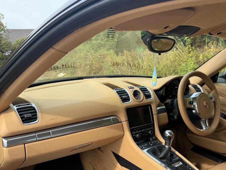 SERVICE HISTORY - 6 SERVICES - 5 MAIN DEALER SERVICES - BRAKE FLUID SERVICES - 5 SERVICES - 4 MAIN DEALER SERVICESLOGBOOKK2Sport Chrono PackageVery rareValuableBi-Xenon Headlights including Porsche Dynamic Light System - PDLSVery rarePower Steering PlusVery rareCruise ControlRareSteering Wheel - Sport DesignRareLeather - Luxor BeigeRarePreparation for Mobile PhoneDiscover this 2013 Porsche Cayman 981, a superb example of German engineering. This model boasts a 2.7 litre petrol engine, offering a refined driving experience. For your convenience, it features automatic headlights, ensuring optimal visibility, and Bi Xenon headlights with integrated turn signal indicators. Inside, you'll find air conditioning to keep you comfortable in all conditions.This Porsche Cayman is also notable for its low insurance group, which can make ownership more affordable compared to similar vehicles. The combination of its powerful yet efficient engine, advanced lighting technology, and comfortable interior makes this Cayman a compelling choice for any discerning driver.