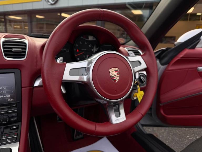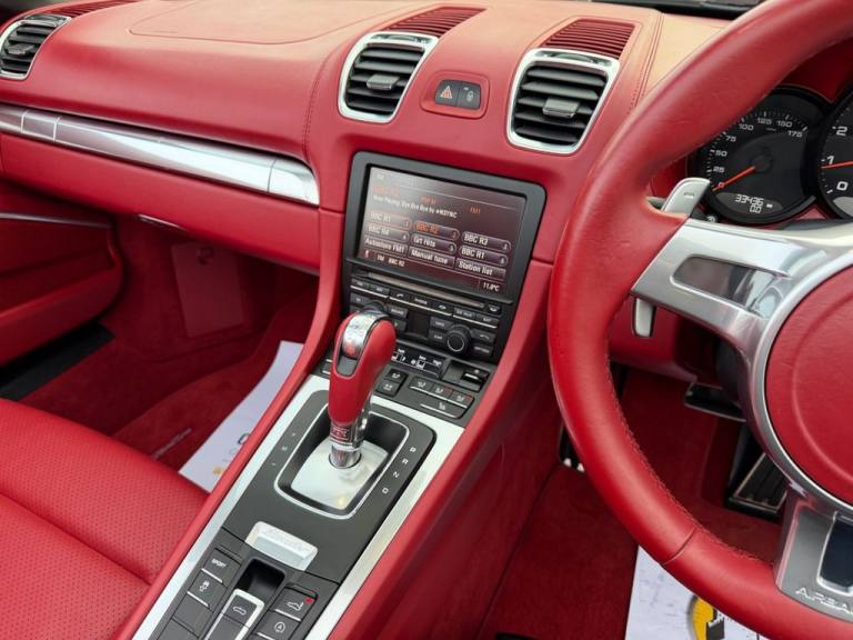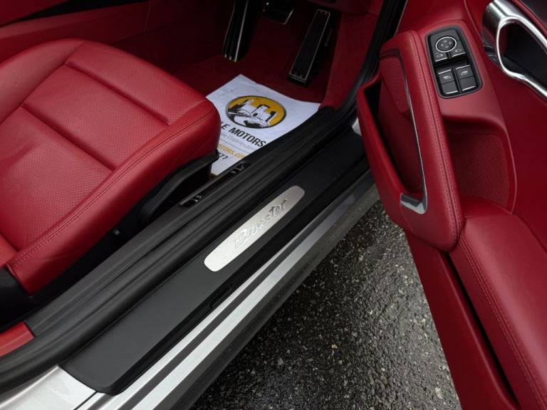 High spec 981 Boxster with approx. £9,000 in cost options. Metallic GT Silver with Red leather and Red roof, high specification and low miles. 20 inch Carrera Classic wheels, extended full leather package, SportDesign steering wheel with paddles, wind deflector, Sound Package Plus, heated seats, roll bars in exterior colour, Sports button, aluminium interior trim, Bluetooth telephone and more. Under 33,500 miles with service history, just three owners form new and exceptional condition throughout stunning spec Boxster, difficult to obtain in this condition. All of our vehicles are ready for same day drive away. CASTLE MOTORS purpose-built showroom & forecourt has a wide range of cars for sale, including some of the worlds most prestigious automobiles. Founded in 1972, we are open 7 days a week. All of our vehicles are presented to the very highest standards possible having gone through our own comprehensive multi-stage preparation. Supplied finance figures are only a guide. Every effort has been made to ensure the accuracy of the above info but errors can occur please check with our sales team. .18in Alloy Wheels - Boxster, 2 x 25 Watt Output, 20in Alloy Wheels - Carrera Classic, 4x Loudspeakers, 7in Colour Display, ABD - Automatic Brake Differential, ABS - Anti-lock Brake System, Active Carbon Filter, Airbag - Driver, Airbag - Head, Airbag - Passenger, Airbag - Thorax in Seat Side Bolsters, Alarm System, Aluminum Subframe at Rear, Analogue Gauges for Engine Speed - Vehicle Speed - Fuel Level, ASR - Anti Slip Regulation, Auto-Deployed Rear Spoiler, Automatic Air Conditioning, Auxiliary LED Light Modules in Front Apron Containing Daytime Running Lights and Position Lights, Bar in Front of Front End Air Intake in Black, Boxster Logotype in Front of Gear-Shift or PDK-Selector, Brake Assistant, Brake Calipers - Red, Brake Calipers with Black Anodised Finish, Brake Calipers with Black Paint Finish, Brake Pad Wear Monitoring on Each Brake Caliper, CDR Audio System, Central Locking with Remote Control, Clear-Glass H7 Halogen Projection Headlights with Integral Turn-Signal Indicators, Clothes Hooks on Seat Backrests, Convertible Top Colour - Black, Cupholders, Daytime Running Lights - LED, Door Brakes with Three Rest Positions, Door Entry Guards with Model Designation, Door Handles - Bow-type, Door Mirrors - Electrically Adjustable and Heated, Doors and Hood Front and Rear Made of Aluminium, Driving Light Assistant Including Automatic Coming Home Lights, Electric Luggage Compartment Locking Front and Rear, Electric Parking Brake, Electric Windows - Lifts with One Touch Operation, Electronic Immobiliser - Transponder System, Enhanced Porsche Stability Management - PSM, Extended Head Restraints Integrated into the Front Seats, Floor Mats, Footwell Illumination, Footwell Illumination - LED, Fully Electrically Operated Hood, Gear Indicator in Rev Counter, Glove Compartment - Lockable, Glove Compartment Illumination, Green Tinted Heat-Insulating Glass, GT Silver, Hill-Start Assist, Ignition Switch and Centre Console Storage Illumination, Instrument Cluster with Black Dials and Central Rev Counter with Aluminium Coloured Dials, Instrument Cluster with Central Rev Counter - 4.6in TFT Colour Display with On-Board Computer - White, Integrated Cluster of Three Round Instruments, LED Licensed-Plate Light, Lightweight Bodyshell in Steel-Aluminium Design, McPherson-Strut Suspension with Anti-Roll Bar at Front, MSR - Motor Slip Regulation, On-Board Computer, Orientation Lighting and Reading Light in Cabin, Pad-Wear Sensors on Each Brake Pad, Passenger Footwell Storage