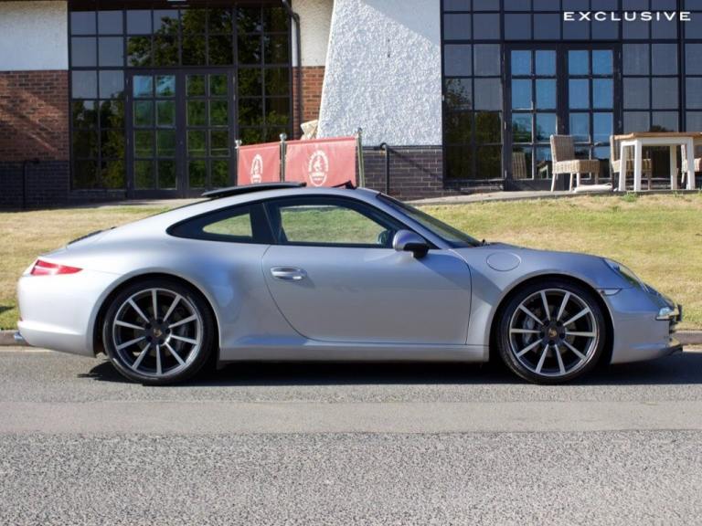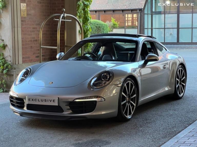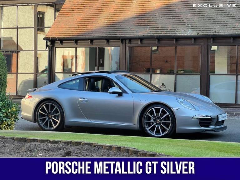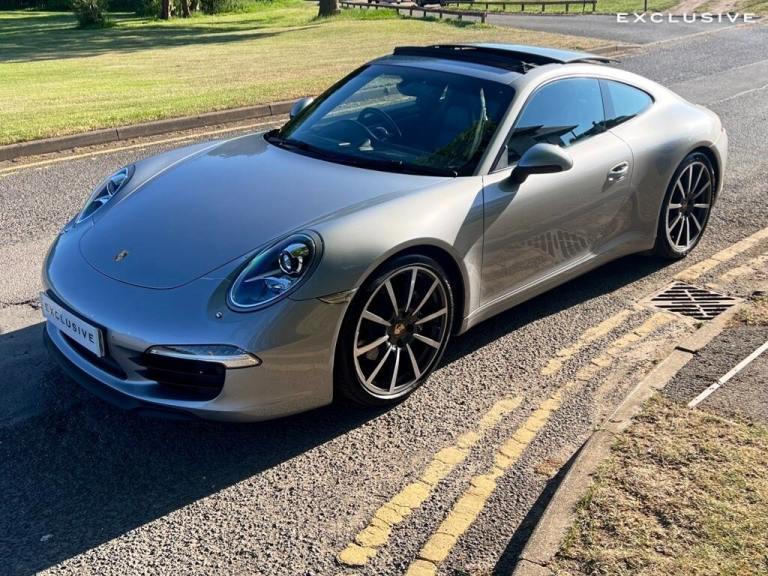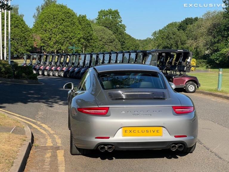 We are super excited to be offering this very special Porsche 911 Carrera on behalf of our existing customer ---|--- This Porsche has been lovingly cherished and maintained; benefitting from full Porsche service history and Porsche warranty until April 2027 for peace of mind! It has recently had an MOT by Porsche and circa £4,500 worth of work carried out by Porsche, with a clean bit of health from its 111 point inspection report by Porsche. This this perhaps one the cleanest example on the market not just mechanically but also aesthetically, with a full body paint protection film (PPF) worth around £4,000 to help preserve the excellent condition of the vehicle ---|--- What makes this vehicle even more special is its extensive specification. Finished in the iconic Porsche GT Silver, the car looks striking from every angle, with this paintwork really highlighting is curves and sleek design well. The specification also includes 20"" Classic Carrera alloys, Sun roof, Bi-xenon headlights with Porsche Dynamic Lighting System (PDLS), Sport Chrono Package, PASM Sport suspension (20mm lower), heated sport seats, BOSE sound system, cruise control, sport exhausts, and much more ---|--- One of our favourite features is the sports exhaust system, which produces a sonorous sound, especially with the sport button deployed...and with the sunroof open, this amplifies the exhilarating experience from driving this incredible car--|---The 911 boasts a powerful 3.4L petrol engine, offering a thrilling driving experience and acceleration from 0-60mph in just 4.6 seconds demonstrates its impressive performance capabilities. The inclusion of Porsche Torque Vectoring Plus, with an electronically locking rear differential, enhances handling and stability, providing a more engaging and confident driving experience. This Porsche 911 991 Carrera combines performance with practicality, making it a compelling choice for discerning drivers---|---Please call us for further information, and we would be delighted to tell you more about this special car. --- | --- VEHICLE INFORMATION --- Exterior and Interior Condition - Excellent --- Tyre Condition - Excellent --- Full Porsche Service History - last service on 21/06/2024 @ 47,169 miles --- Porsche Warranty until April 2027 --- Next MOT due 21/01/2026 --- 101 Point Health Check carried out by Porsche with clean health report. --- OPTIONAL EXTRAS INCLUDE: ----20in Alloy Wheels - Carrera Classic---Electric Slide and Tilt Sunroof---BOSE Surround Sound System---PASM - Porsche Active Suspension Management---Sports Exhaust System---Sport Chrono Package---Bi-Xenon Headlights including Porsche Dynamic Light System - PDLSRare---Porsche Torque Vectoring Plus - PTV Plus with Electronically Locking Rear Differential---Metallic GT Silver Paintwork--Seats - Heated Front---Wheel Centres with Full-Colour Porsche Crest---Cruise Control---Tyre Pressure Monitoring - TPM---Top Tinted Windscreen---Park Assist - Front and Rear---Telephone Module---Digital Radio (DAB, DAB +, DMB)---Electrically Folding Exterior Mirrors---Floor Mats--Sports Seats - Electrical 14 Way---Automatically Dimming Mirrors with Integrated Rain Sensor---Top Tinted Windscreen---Porsche Communication Manage