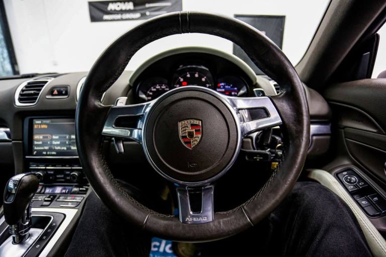 This 2014 Porsche Cayman 981 presents an exceptional opportunity with remarkably low mileage for its age, having covered just 49,800 miles. This particular example is equipped with a 2.7 litre petrol engine and features the desirable PDK automatic gearbox with an aluminium selector. Comfort and convenience are enhanced by air conditioning and a preparation for mobile phone connectivity including Bluetooth. For an improved audio experience, it includes the Sound Package Plus, and the top tinted windscreen adds a touch of refinement. The low insurance group for this Cayman is a significant highlight, indicating that running costs could be more affordable compared to similar vehicles. This, combined with its impressive provenance and well chosen features, makes this Porsche Cayman 981 a compelling choice for those seeking a sporty yet practical car. Nova Motor Group is a prestige car dealership run by car enthusiasts with a passion for motoring and a commitment to excellent customer service! All of our vehicles come with 3 months warranty (where applicable) supplied by AutoProtect, with options to extend this up to 3 years for added peace of mind. We also offer optional products to protect your cars interior and exterior with Williams F1 Racing Team Ceramic Coating, providing a lifetime guarantee on treated surfaces. We welcome part exchanges regardless of age or mileage, A short inspection is all we need. Our aim is always to provide the fairest and most accurate price for your vehicle. Test drives are welcomed with open arms, just remember to bring your drivers licence for insurance purposes. As a broker, we offer flexible finance options through our panel of trusted lenders (rates subject to your credit profile). Finance checks can be performed in-house or online, from the comfort of your home..Sound Package Plus, Preparation for Mobile Phone, PCM - Porsche Communication Management -, Cayman Logotype in Front of Gear-Shift o, Basalt Black, Top Tinted Windscreen, Floor Mats, Rear Wiper, Sound Package Plus, Preparation for Mobile Phone, PDK Gear Selector - Aluminium, PCM - Porsche Communication Management - Include Navigation, 12v Socket - Centre Console, 18in Alloy Wheels - Cayman, 2 x 25 Watt Output, 7in Colour Display, ABD - Automatic Brake Differential, ABS - Anti-lock Brake System, ASR - Anti Slip Regulation, Active Carbon Filter, Air Conditioning, Airbag - Driver, Airbag - Head, Airbag - Passenger, Airbag - Thorax in Seat Side Bolsters, Analogue Gauges for Engine Speed - Vehicle Speed - Fuel Level, Anti-Theft Wheel Protection, Auto-Deployed Rear Spoiler, Automatically Extending Rear Spoiler, Auxiliary LED Light Modules in Front Apron Containing Daytime Running Lights and Position Lights, Bar in Front of Front End Air Intake in Black, Bi-Xenon Headlights with Integral Turn-Signal Indicators, Brake Assistant, Brake Calipers - Black, Brake Calipers with Black Paint Finish, CDR Audio System, Cayman Logotype in Front of Gear-Shift or PDK-Selector, Clear Glass H7 Halogen Projection Headlights with Integral Turn Signal Indicators, Clothes Hooks on Seat Backrests, Cupholders, Daytime Running Lights - LED, Door Brakes with Three Rest Positions, Door Entry Guards with Model Designation, Door Mirrors - Electrically Adjustable and Heated, Doors and Hood Front and Rear Made of Aluminium, EDTC - Engine Drag Torque Control, Electric Parking Brake, Electric Windows - Lifts with One Touch Operation, Electronic Immobiliser - Transponder System, Enhanced Porsche Stability Management - PSM, Front Lip Spoiler in Black-Unpainted, Gear Indicator in Rev Counter, Glove Compartment - Lockable, Glove Compartment Illumination, Green Tinted Heat-Insulating Glass, Headlight Assistance, Headlight Cleaning System, Heated Glass Rear Screen, Instrument Cluster with Central Rev Counter and 4.6in TFT VGA Display, Integral Head Restraints on Seats, Integrated Cluster of Three Round Instruments, Interior Orientation Lighting and Reading Light, LED Reading Lights Orientation Ignition Lock and Vanity Mirror Lighting, LED Rear Lights and Third Brake Light, Lightweight Bodyshell in Steel-Aluminium Design, Lightweight Spring-Strut Suspension, Manual Seat Height Adjustment, On-Board Computer, On-Board Diagnostics for Monitoring of the Emission Control System, Operated Hood with Heated
