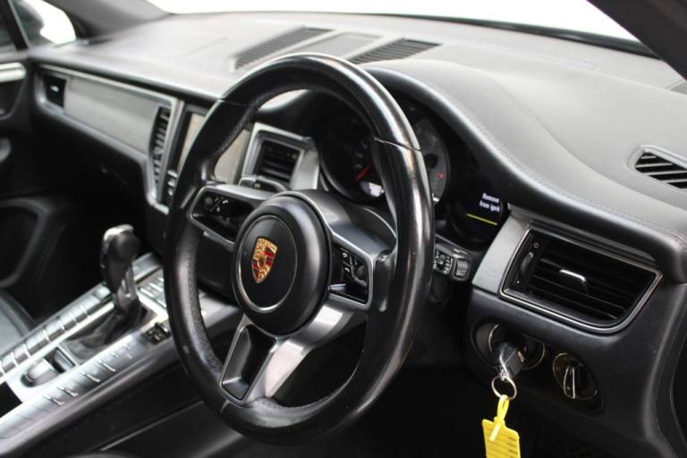 NEW IN STOCK. BLACK. HPI CLEAR. DATE OF REGISTRATION: 13/09/2014. 2 Keys. Serviced at: 13k, 32k, 52k, 61k, 65k, 69k. Specification includes: Satellite Navigation, Pan Roof, Bose Sound, Leather Seats, Heated Seats, Front and Rear Parking Sensors, DAB, Bluetooth, Cruise Control. 12 month AA Breakdown Assistance included. Finance available. Part Exchange Welcome. Visit our website: [Website URL removed] to view our latest diversified stock listings .18in Alloy Wheels - Macan S, 2x Front 12v Sockets, 2x Rear 12v Sockets, 7in TFT Touchscreen, ABD - Automatic Brake Differential, ABS - Anti-lock Brake System, ASR - Anti Slip Regulation, Active Radiator Grille Shutters, Adaptive Brake Lights, Airbag - Curtain, Airbag - Driver, Airbag - Head, Airbag - Passenger, Airbag - Passenger Deactivation Switch, Alarm System, Armrest - Folding Centre with Cupholders, Automatic Headlight Activation including Welcome Home Lighting, Brake Pad Wear Monitoring on Each Brake Caliper, CDR Audio System, Central Locking with Remote Control, Coasting Function, Cupholders - Rear x2 in Armrest, Cupholders x2, Daytime Running Lights, Digital Boost-Pressure Indicator in TFT Colour Display in Instrument Cluster, Digital Radio - DAB - DAB+DMB, Door Mirrors - Electrically Adjustable and Heated with Power Fold, Door Sill Guards - Aluminium, Electric Parking Brake, Electric Windows - Front Lift with One Touch Operation and Electrically Operated Rear Side Windows, Electronic Immobiliser - Transponder System, Floor Mats, Four Doors with Side-Impact Protection Beams, Four-Way Headrests - Front, Front Apron with Integrated Air Inlets, Front Fog Lights, Glove Compartment Illumination, Headlights - Halogen, Heated Windscreen Washer Jets, High-level Third Brake Light - LED Integrated into Roof Spoiler, ISOFIX Child Seat Preparation, Ignition Switch and Centre Console Storage Illumination, Instrument Cluster with High-resolution 4.8in TFT Colour Display, Interior Lighting Reading Spots - Front and Rear, Interior Package - Piano Black, MSR - Motor Slip Regulation, Non-Smoker Package, Off Road Button, On-Board Computer, PORSCHE Logotype and Model Designation on Rear Lid in Chrome Look, PSM - Porsche Stability Management, PTM - Porsche Traction Management, Park Assist - Front and Rear, Park Assist - Rear, Particle-Pollen Filter with Activated Charcoal Canister, Porsche Hill Control - PHC, Power Steering, Powerlift Tailgate, Preparation for Towbar System, Rain Sensor, Removable Luggage Compartment Cover, Roof Lining in Fabric, Seats - Driver Height Adjustment, Seats - Driver with 8 Way Electric Adjustment, Seats - Passenger 6-Way Mechanical, Sideblades - Lava Black, Single CD Drive Supporting MP3 Audio Playback, Speakers x11, Split-Folding Rear Seats - 40-20-40, Sport Mode Button, Steering Wheel - Gearshift Paddles, Steering Wheel - Multi-Function, Steering Wheel - Sport Design Leather with Paddles, Storage Bin - Centre Console, Tailights - LED, Ti