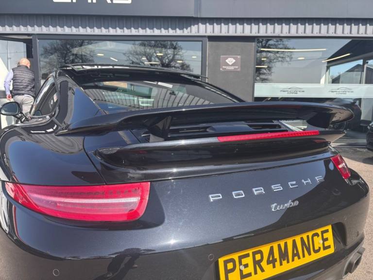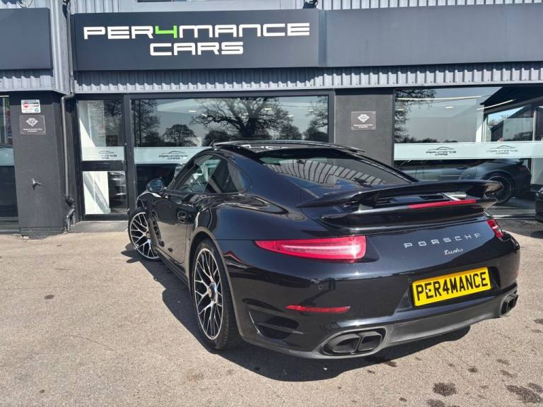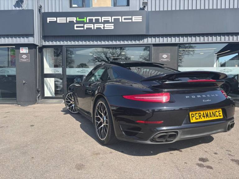 PER4MANCE CARS ARE DELIGHTED TO OFFER ANOTHER STUNNING PORSCHE 991 TURBO 3.8T PDK COUPE FOR SALE, THIS BEAUTIFUL EXAMPLE COMES WITH FULL PORSCHE MAIN DEALER FRANCHISE HISTORY WITH SERVICE BEING CARRIED OUT IN APRIL 2025. PRESENTED IN STUNNING CONDITION, BEAUTIFUL JET BLACK METALLIC PAINTWORK WITH FULL UNMARKED BLACK LEATHER, HUGE FACTORY SPECIFICATION INCLUDING - SPORT CHRONO PACKAGE, UNMARKED 20" TURBO S ALLOYS (CENTRE-LOCKING), ELECTRIC TILT/SLIDE GLASS SUNROOF, ADAPTIVE SPORTS SEATS PLUS WITH 18-WAY ELECTRIC ADJUSTMENT WITH MEMORY AND HEATING. SPORT DESIGN EXTERIOR MIRRORS, COLOURED WHEEL CENTRES, FRONT AND REAR PARK ASSIST, POWER STEERING PLUS, AND FACTORY PRIVACY GLAZING. Full dealer facilities available, Finance available, please apply via our website or call for a quote. We have a team of experienced buyers who hand pick our cars from all parts of the UK so you can buy with confidence all vehicles are HPI Clear and prepared to the highest standard. We believe in providing our customers with a personal and first class level of service,Full dealer facilities available, Part exchanges welcomed. CONTACT OUR EXPERIENCED SALES TEAM ON [Phone number removed] OR EMAIL [Email address removed. Click Email button to contact us.]. .12-Volt Socket in Passenger Footwell, 12v Socket - Storage Bin Centre Console, 12v Socket Outlet in Glove Compartment, 20in Alloy Wheels - 911 Turbo, 7in TFT Touchscreen, ABD - Automatic Brake Differential, ABS - Anti-lock Brake System, ASR - Anti Slip Regulation, Air Vents - Galvano Silver, Airbag - Driver, Airbag - Head, Airbag - Passenger, Airbag - Thorax in Seat Side Bolsters, Alarm System, Automatic Hill-Hold, Automatically Dimming Exterior and Interior Mirrors, BOSE Surround Sound System, Bi-Xenon Headlights, Brake Assistant, Brake Calipers - Red, CD Radio, CDR Audio System, Central Locking with Remote Control, Centre Console Trim - Galvano Silver, Clothes Hooks on Seat Backrests, Cupholders x2, Dashboard Trim - Galvano Silver, Daytime Running Lights - LED, Digital Display - Speed-Gear, Digital Radio - DAB - DAB+DMB, Door Mirrors - Electrically Adjustable and Heated, Door Mirrors - Memory Function, Door Sill Guards - Model Designation Logo, Driving Light Assistant, Dynamic Cornering Lights, Electric Parking Brake, Electric Windows - Lifts with One Touch Operation, Engine Compartment Cover - Turbo Logo, Engine Immobiliser, Extended Head Restraints Integrated into the Front Seats, Footwell Illumination, Front Side Airbags, Front Spoiler - Automatically Retractable 3-Level - Basic-Speed-Performance, Glove Compartment - Lockable, Glove Compartment Opener - Galvano Silver, Green Tinted Heat-Insulating Glass, Headlight Washers, Headlights - Automatic Dynamic Headlight Levelling, Heated Rear Screen, Heated Windscreen Washer Jets, ISOFIX Anchors for Child Seat Attachment on Rear Seats, Illuminated Vanity Mirrors in Both Sun Visors, Instrument Cluster with Central Rev Counter and 4.6in TFT VGA Display, Integrated Cluster of Five Round Instruments, Integrated Interior Lighting Concept with Stepless Dimming, Interior Door Handles - Galvano Silver, Interior Door Trim - Galvano Silver, Key Remote Luggage Compartment Lid Release, LED Reading Lights Orientation Ignition Lock and Vanity Mirror Lighting, MSR - Motor Slip Regulation, On-Board Computer, PASM - Porsche Active Suspension Management, PCM - Porsche Communication Management - Include Navigation, PSM - Porsche Stability Management, PTM - Porsche Traction Management, PVTS - Porsche Vehicle Tracking System, Pad-Wear Sensors on Each Brake Pad, Park Assist - Rear, Particle-Pollen Filter with Active Carbon Filter, Porsche Active Aerodynamics - PAA, Porsche Dynamic Light System - PDLS, Porsche Side Impact Protect