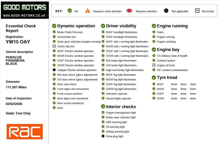 +++ YOU CAN BUY ANY CAR WITH A PART PAYMENT OF JUST £500 THE CAR MUST BE COLLECTED/PAID IN FULL WITHIN 7 DAYS +++ +++SAME DAY NATIONWIDE DELIVERY AVAILABLE+++ +++OVER 150 VEHICLES IN STOCK+++WWW.GOOD-MOTORS.CO.UK+++ +++FINANCE AVAILABLE+++HERE WE HAVE ANOTHER CAREFULLY SELECTED PART EXCHANGE VEHICLE, A VERY NICE EXAMPLE, COMES WITH WARRANTY, SERVICE HISTORY WITH ITS LAST SERVICE ON CURRENT MILES, 1 FORMER KEEPER, COMES WITH 12 MONTHS MOT, THE VEHICLE IS IN GOOD CONDITION BOTH INSIDE AND OUT. NON-SMOKER OR PET OWNER CAR, SUPERB SPEC INCLUDING: SUNROOF,DIGITAL COCKPIT. FULL MAP SAT NAV, FULL LEATHER INTERIOR, HEATED FRONT SEATS, ELECTRIC FRONT SEATS, COLOUR TOUCH SCREEN DISPLAY, DAB RADIO, BLUETOOTH HANDS FREE, AUDIO STREAMING, USB AND AUXILIARY INPUT SOCKET, DUAL CLIMATE CONTROL. KEY LESS ENTRY, KEY LESS START, CRUISE CONTROL, SPEED LIMITER, DAY TIME RUNNING LIGHTS. REAR LED LIGHTS. AUTO LIGHTS. AUTO WIPERS. ELECTRIC WINDOWS, ELECTRIC POWER FOLDING MIRRORS, ELECTRIC POWER FOLDING TAILGATE. CENTRAL LOCKING, AIR CONDITIONING, PARKING SENSORS, REVERSE CAMERA, ALL AROUND CAMERA VIEW, TYRE PRESSURE MONITORING SYSTEM. ISOFIX & CHILD LOCKS. MULTI FUNCTION STEERING WHEEL CONTROLS. PRIVACY GLASS. ALLOYS, SUPPLIED WITH 2 REMOTE KEYS. 35 POINT HEALTH CHECK WITH 20 MILE TEST DRIVE, HPI CLEAR WITH AND VOSA MILEAGE REPORT, EXTENDED RAC WARRANTIES WITH BREAKDOWN COVER AVAILABLE, ALL BANK TRANSFERS WELCOME, VIEW OVER 150 SIMILAR CARS ON OUR WEBSITE +++WWW.GOOD-MOTORS.CO.UK+++ EVERY EFFORT HAS BEEN MADE TO ENSURE THE ACCURACY OF THE INFORMATION ABOVE. HOWEVER, ERRORS MAY OCCUR. CHECK WITH A SALESPERSON ABOUT ITEMS WHICH MAY AFFECT YOUR DECISION TO PURCHASE. .2 Twin-Tube Tailpipes - Left-Right Side , Door Sill Guards - Brushed Aluminium, Airbag - Passenger, 2x Rear 12v Sockets, 7in TFT Touchscreen, 18in Alloy Wheels - Panamera S, 2 Twin-Tube Tailpipes - Left-Right Side Outboard - Stainless Steel - Brushed, 2x Front 12v Sockets, 2x Rear 12v Sockets, 7in TFT Touchscreen, ABD - Automatic Brake Differential, ABS - Anti-lock Brake System, ASR - Anti Slip Regulation, Active Hood System, Adaptive Air Suspension, Adaptive Brake Lights, Adaptive Rear Spoiler 2-Way, Air Outlets in Fenders Behind Front Wheels - Black Grained, Airbag - Curtain, Airbag - Driver, Airbag - Head, Airbag - Passenger, Airbag - Passenger Deactivation Switch, Alarm System, Armrest - Front Centre Console with Integrated Storage Compartment, Auto-Deployed Rear Spoiler, Automatically Dimming Exterior and Interior Mirrors, Bi-Xenon Headlights, Bluetooth Handset for Telephone Module, Bonnet - Tailgate - Doors and Front Wings in Aluminium, Brake Assistant, Brake Calipers in Acid Green, Brake Pad Wear Monitoring on Each Brake Caliper, CDR Audio System, Central Locking with Remote Control, Coasting Function, Cruise Control, Cupholders - Front Centre Armrest x1, Cupholders - Rear x2, Daytime Running Lights - LED, Diffuser in Lower Rear Apron - Smooth - Black Grained, Digital Radio - DAB - DAB+DMB, Door Mirrors - Electrically Adjustable and Heated with Power Fold, Door Sill Guards - Brushed Aluminium, Driving Light Assistant, Dynamic Range Adjustment, E-Mobility - Power Cable for Domestic Plug 2.5m, EDTC - Engine Drag Torque Control, Electric Parking Brake, Electric Windows - Front Lift with One Touch Operation and Electrically Operated Rear Side Windows, Engine Immobiliser, External Amplifier, Floor Mats, Folding Centre Armrest - Rear, Front Fog Lights - LED, Halogen Auxiliary Main-Beam, Headlight Cleaning System, Headlights - Automatic Dynamic Headlight Levelling, ISOFIX Anchors for Child Seat Attachment on Rear Seats, Instrument Cluster with High-resolution 4.8in TFT Colour Display, Integrated Antenna System for Audio-Navigation-Telephone and TV, Integrated Cluster of Five Round Instruments, Integrated Headrests - Front and Rear, Interior Indicator - Gear Recommendation, Interior Lighting Packaging, Interior Trim - Black High-Gloss, Knee Airbags for Driver and Front Passenger, Luggage Compartment with Velour Lining, PASM - Porsche Active Suspension Management, PCM - Porsche Communication Management - Multimedia System, PORSCHE Logotype and Model Designat