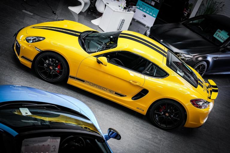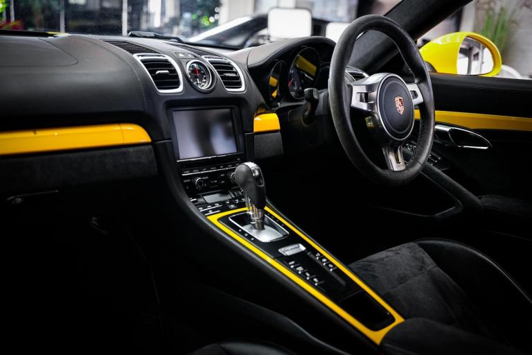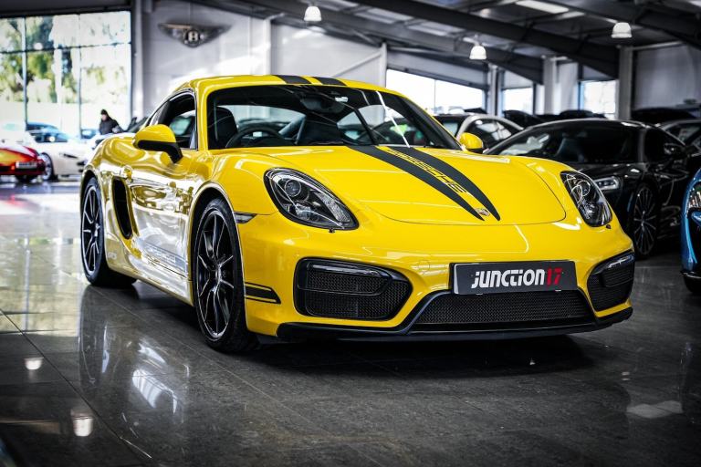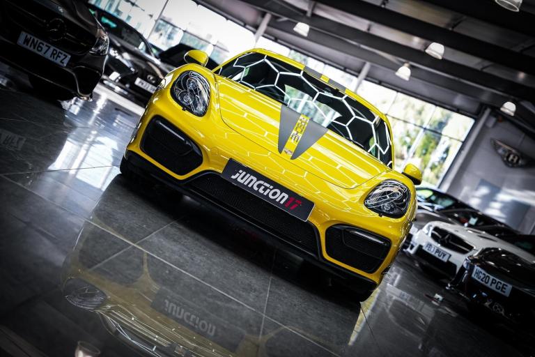 *CLICK - BUY - COLLECT* FINANCE AVAILABLE! HPI CLEAR! Junction 17 Cars now have to offer a stunning Porsche Cayman (981) GTS PDK 2dr Coupe.. Outstanding Porsche/Main dealer service history with 5x records present.. Finished in Racing Yellow Gloss with Black leather/alcantara upholstery and colour coded interior finish.. Huge specification with over 8,000 in factory fitted extras, such as.. PCM with satellite navigation.. Reverse parking aid.. Heated front seats.. Sound package plus.. Mobile phone connectivity.. Light design package.. Speed limit assist.. Folding exterior mirrors.. GTS Black sticker package, with Black badging.. 20'' Carrera S Alloy wheels, in factory Satin Black.*WE WILL BEAT ANY CAR VALUATION SITE FOR YOUR PART EXCHANGE* Junction 17 Cars (Runner Up at the Motor Trader Independent Dealer Awards 2019 nominated for Car Supermarket of the Year Award) is a unique family run business with over 7 millions worth of stock currently split over our purpose-built showroom in Yaxley, Peterborough and our new showrooms in Grantham and Rugby. Our vehicles can also be reserved with a 99 refundable holding deposit to ensure that they are professionally prepared/valeted for your viewing pleasure. Competitive HP and PCP packages are available with decision/approval available within 15 minutes. We also offer comprehensive warranties over a variety of different terms as well as Williams Ceramic Coating, Flexfuel Engine Carbon Cleaning and more. **NATIONWIDE DELIVERY AVAILABLE** Payment : maximum 500 card payment balance by bank transfer The vehicle is being sold on behalf of a third party for whom we act as an agent