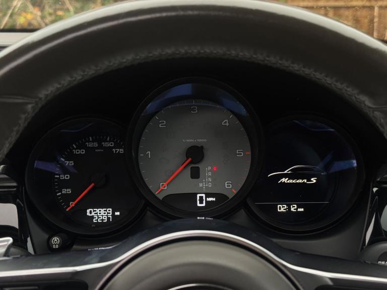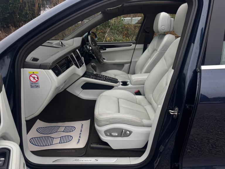 1 FORMER KEEPERPART SERVICE HISTORYLOGBOOKK2Speed Limit IndicatorVery rareLane Change AssistVery rareSmoker PackageVery rarePanoramic Roof SystemValuableSeats - Comfort with Memory PackageVery rare20in Alloy Wheels - Macan SportDesignVery rareReversing Camera Including Park Assist Front and RearRarePASM - Porsche Active Suspension ManagementRareBOSE Surround Sound SystemParkAssist - Front and Rear with Reversing CameraSeats - Heated FrontEquipmentBOSE Sound SystemCar Phone PreparationMap Data - HDD with Media StorageMedia System - PCMNavigation System - MappedNavigation HDDReverse Assist CameraRadio/Compact Disc PlayerSpeed Limit DisplaySmoking PackMemory Seat Pack - 14 Way ComfortInterior Pack - Piano BlackPanoramic Roof - FixedPark AssistAuto Dimming Mirror(s) - Interior & ExteriorHeated Front Seats2-Tone Leather Trim - Agate Grey/Pebble GreyHeated Steering WheelLane Change Assist20'' Alloy WheelsSuspension - PASMFuel Capacity - 75lMetallic PaintSideblade(s) - Body Colour CodedThis 2015 Porsche Macan TD V6 S presents a superb ownership history, having had only two previous owners. This desirable S trim model is equipped with a powerful 3.0L Diesel engine and a Four Wheel Drive drivetrain, ensuring excellent performance and control in all conditions. It meets Euro 6 emission standards, reflecting its modern and efficient design. For convenience, this Macan features Park Assist for both front and rear, along with automatic headlight activation that includes a welcome home lighting function. Inside, you'll find Two Zone Automatic Climate Control, ensuring comfort for all occupants.