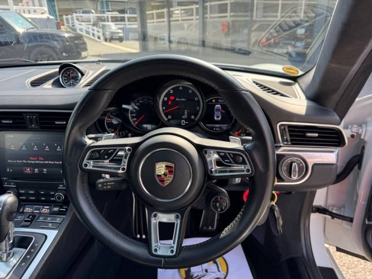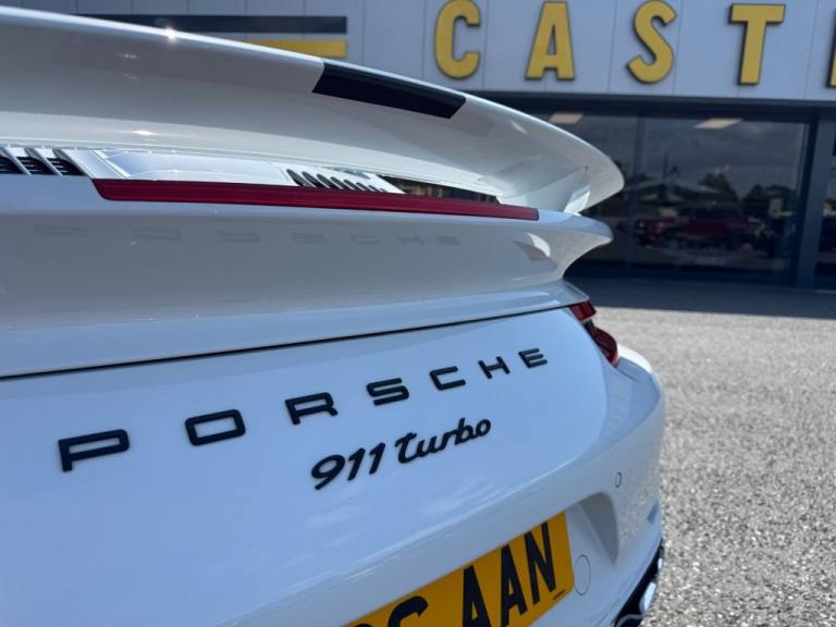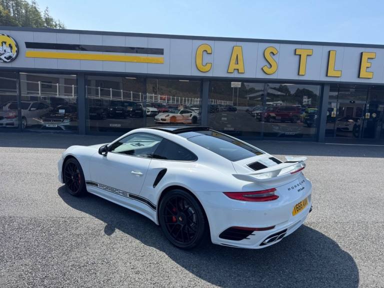 991.2 Turbo PDK Auto 911 Coupe 3.8 540ps. White with Black full leather, facelift GEN2 Model with high specification including 20 inch centre lock 911 Turbo S Wheels in Black, glass sunroof, heated electric adjustable seats plus heated steering wheel , Black Exterior Pack, BOSE HiFi, adjustable suspension, Sport Chrono Package with adjustable driving modes on wheel, cruise control, Porsche crested seats, Guards Red seatbelts, Turbo embossed armrest, LED Headlights PDSL Porsche Dynamic Light System, painted side skirts, HomeLink Door opener, , Suede headlining and more. Covered 48,000 miles with Porsche service history plus service inspection before sale by ourselves. Condition must be seen to be appreciated All of our vehicles are ready for same day drive away. CASTLE MOTORS purpose-built showroom & forecourt has a wide range of cars for sale, including some of the worlds most prestigious automobiles. Founded in 1972, we are open 7 days a week. All of our vehicles are presented to the very highest standards possible having gone through our own comprehensive multi-stage preparation. Supplied finance figures are only a guide. Every effort has been made to ensure the accuracy of the above info but errors can occur please check with our sales team. .12-Volt Socket in Passenger Footwell, 20in Alloy Wheels - 911 Turbo, ABD - Automatic Brake Differential, ABS - Anti-lock Brake System, Airbag - Driver, Airbag - Head, Airbag - Passenger, Airbag - Thorax in Seat Side Bolsters, Alarm System, Analogue and Digital Stop Watch, Apple CarPlay, ASR - Anti Slip Regulation, Automatic Coming Home Lights, Automatic Hill-Hold, Automatically Dimming Exterior and Interior Mirrors, BOSE Surround Sound System, Brake Assistant, Brake Calipers - Red, Central Locking with Remote Control, Clothes Hooks on Seat Backrests, Connect Plus, Cruise Control, Cupholders x2, Dashboard Trim-Centre Console Trim-Door Panel Trim in Galvano Silver, Daytime Running Lights - LED, Digital Display - Speed-Gear, Digital Radio - DAB - DAB+DMB, Door Mirrors - Electrically Adjustable and Heated, Door Mirrors - Memory Function, Door Sill Guards - Model Designation Logo, Driving Light Assistant, Dynamic Cornering Lights, Electric Parking Brake, Electric Windows - Lifts with One Touch Operation, Engine Immobiliser, Footwell Illumination, Front Lip Spoiler - Turbo Logo, Front Side Airbags, Front Spoiler - Automatically Retractable 3-Level - Basic-Speed-Performance, Glove Compartment - Lockable, Green Tinted Heat-Insulating Glass, Headlight Cleaning System, Headlights - Automatic Dynamic Headlight Levelling, Headlights - Full LED inc PDLS Porsche Dynamic Lighting System, Heated Rear Screen, Heated Windscreen Washer Jets, Illuminated Vanity Mirrors in Both Sun Visors, Instrument Cluster with Central Rev Counter and 4.6in TFT VGA Display, Integrated Cluster of Five Round Instruments, Internet Access - Wireless, ISOFIX Anchors for Child Seat Attachment on Rear Seats, Key Remote Luggage Compartment Lid Release, LED Reading Lights Orientation Ignition Lock and Vanity Mirror Lighting, Luggage Compartment - Front, MSR - Motor Slip Regulation, On-Board Computer, Pad-Wear Sensors on Each Brake Pad, Park Assist - Front, Park Assist - Rear, Particle-Pollen Filter with Active Carbon Filter, PASM - Porsche Active Suspension Management, PCM - Porsche Communication Management - Include Navigation, Porsche Active Aerodynamics - PAA, Porsche Car Connect - E-Mobility Services, PORSCHE Logo and 911 Turbo Designation on Rear Apron - High-Gloss Chrome Finish, Porsche Side Impact Protection - POSIP, Porsche Torque Vectoring Plus - PTV Plus with Electronically Locking Rear Differential, Porsche Vehicle Tracking System Plus, Power Assisted Steering with Variable Steering Rati