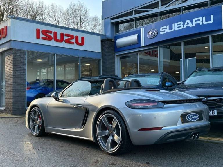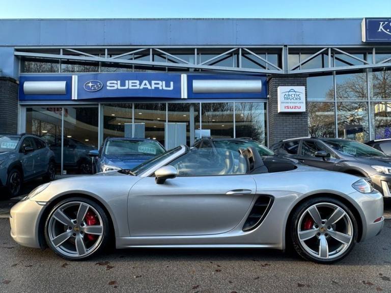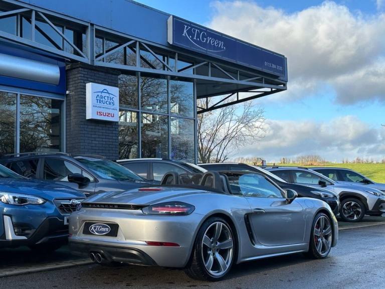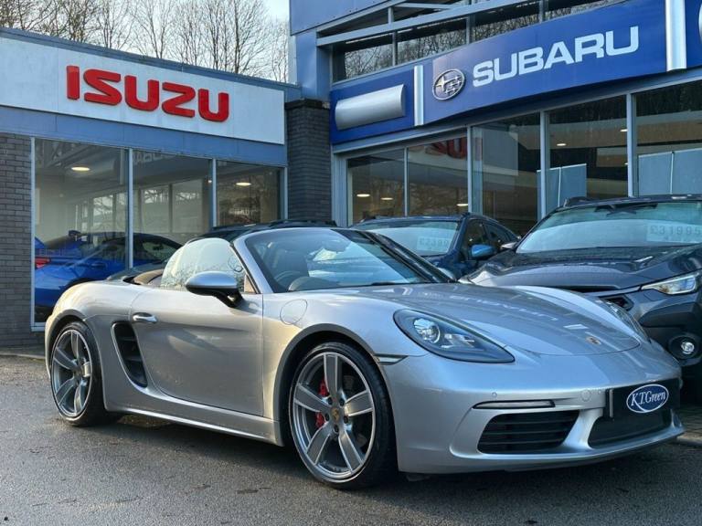 This Stunning 718 Boxster S Manual is finished in GT Silver with a Black Leather Interior. Just Two Owners from new and Full Service History with a mixture of Porsche and Specialist. Over £5000 of Optional Spec including: PASM Suspension (20mm lower), Navigation Module for PCM, 20" Carrera Sport Wheels, Bose Surround System, Park Assist Front and Rear, Heated Steering Wheel and Seats, Sports Seats Plus, Cruise Control and much more. Service Mileages are 9901, 13195, 14900 & 16103. Buy with confidence from a family business established in 1951, Subaru & Isuzu Main Dealers for over 30 years. All cars are HPI checked, fully detailed, workshop prepared and serviced up to date. 12 Months MOT and a minimum of 6 Months Warranty included. Every effort is made to provide accurate information and specifications on our adverts, mistakes can occur so please check first if you are not sure and it would affect your decision to purchase. Visit [Website URL removed] to see our latest full stock list.Wheel Centres with Full-Colour Porsche Crest, Cruise Control, Seat Heating, Heated Multifunction Steering Wheel, Sports Seats Plus - Electrical 2 Way, Park Assist - Front and Rear, BOSE Surround Sound System, Navigation Module for Porsche Communication Management - PCM, Sports Suspension - 20mm Lower, 12-Volt Socket in Passenger Footwell, 19in Alloy Wheels - Boxster S, 64 Litre Fuel Tank, Air Conditioning with Integrated Active Carbon Filter, Alarm System, Anti-Theft Wheel Bolts, Ascending Centre Console with One Uncovered and One Covered Storage Compartment, Automatic Deploying Rear Wing, Automatic Headlight Activation including Welcome Home Lighting, Bi-Xenon Main Headlights with Integrated LED Daytime Running Lights, Clothes Hooks on Seat Backrests, Convertible Top Colour - Black, Deletion of Model Designation, Digital Displays for Driving Speed - Selected Gear - Odometer - Trip Meter and Time, Door Panels Armrest and Centre Console Main Storage Compartment Lid in Smooth Finish Leather, Door Sill Guards with Model Logo, Electric Parking Brake, Engine Immobiliser and Central Locking with Remote Control, Fan with Air Recirculation and Defroster Functions, Fixed Roll-Over Bar, Floor Mats, Full Size Airbags for Driver and Front Passenger, Fully Automatic Fabric Hood, Green Tinted Heat-Insulating Glass, Heated Rear Screen, Hood Lining in Black Fabric, Instrument Cluster with Central Rev Counter and High Resolution 4.6inch Colour Display, Instrument Dials in Black with Rev Counter in Silver, LED Auxiliary Lights Units in Front Apron with Position Lights - Direction Indicators and Side Indicators, LED Tail Lights with Integrated Four-Point Brake Lights and Reversing Lights, Luggage Compartments at Front and Rear, Net-Type Wind Deflector, PORSCHE Logo on Accent Strip and Model Designation on Rear Apron in Silver Colour - High Gloss, PSM - Porsche Stability Management, Porsche Communication Management - PCM, Porsche Side Impact Protection - POSIP, Porsche Vehicle Tracking System Plus, Power Steering, Power Windows with One-Touch Operation and Door Seal Protection Function, Reinforced Version of 718 Boxster Brake System - Brake Calipers in Red, Sound Package Plus, Sports Seats with Electric Backrest Adjustment and Manual Fore-Aft and Height Adjustment, Sports Steering Wheel - Diameter 375mm with Manual Fore-Aft and Height Adjustment, Sports-Look Pedals and Footrest, Steering Wheel Rim - Gear Lever - Door Pull Inlays all in Smooth Finish Leather, Storage Compartme