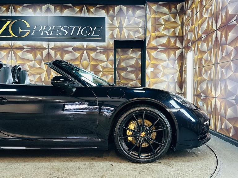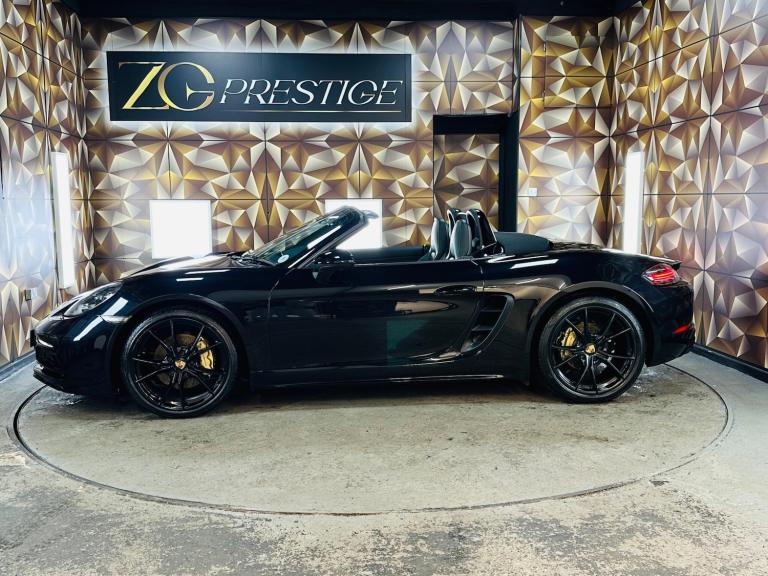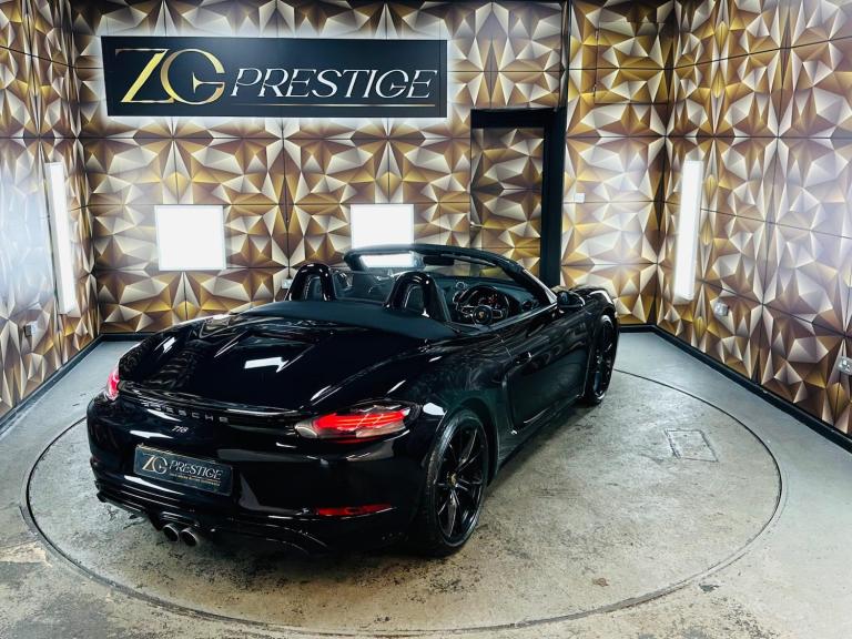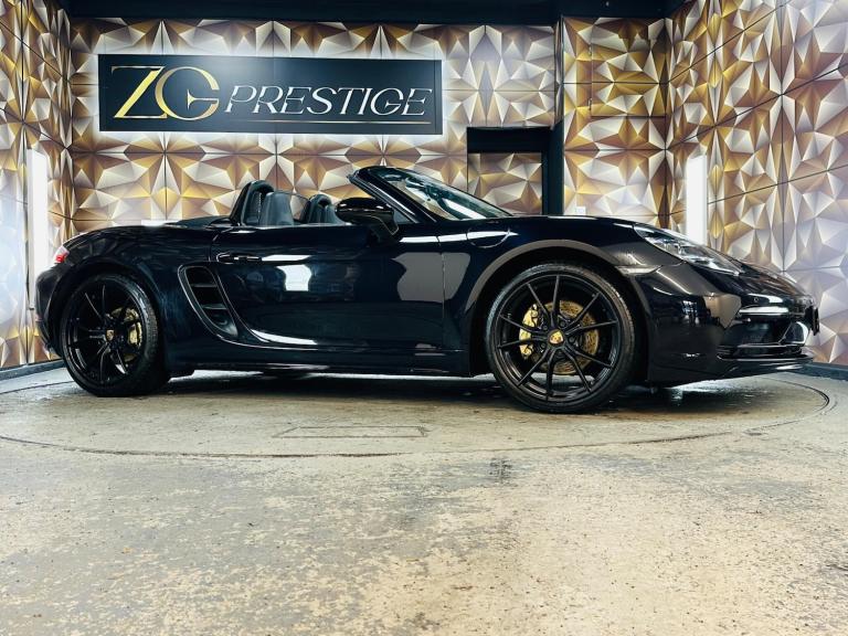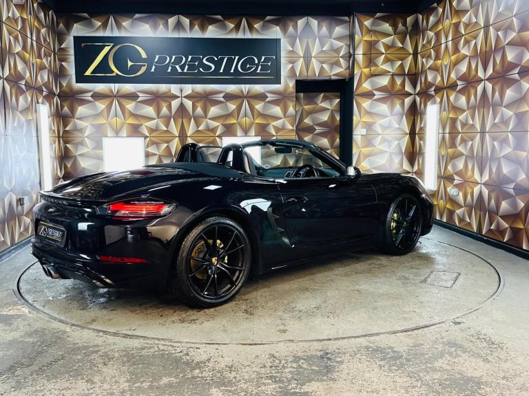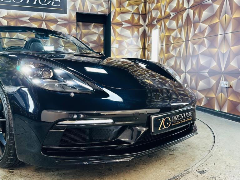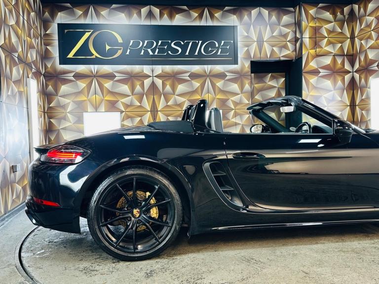 Buy with confidence at ZG Prestige. We are Highly Rated by Auto Trader, recognised as one of the Top 5 Car Dealerships in the UK by CarDealer, and proud to be AA Approved, FCA Regulated, and part of The Motor Ombudsman. With Excellent ratings across Google, eBay, Motors, CarGurus, and PistonHeads, we deliver a trusted service from the towns largest indoor prestige showroom. Featured Vehicle: Porsche 718 Boxster 2.0T PDK Euro 6 (s/s) 2dr in Black with Black Interior. Supplied with 2 Keys, Full Dealership Service History. Last Service done 17/12/2025, and MOT until 17/12/2026. Excellent condition both inside and out. Our detailed inspection will include replacing any worn wear and tear items like Tyres and Brakes. Some of the Great Specification includes Full PPF, Gold Callipers, Sports Exhaust System, Sport Chrono Package including Mode Switch and So Much More. When you buy from ZG Prestige, on this vehicle you will receive a FREE 16-Months Premium Warranty with nationwide coverage, no limit on claims, direct payment to the repairing garage, and protection against mechanical and electrical faults. You can extend the warranty for up to 36 months. Every car also includes 12 months AA Breakdown Cover, a clear Experian HPI report, and a 120+ point pre-delivery inspection including a full computer scan report. We offer nationwide delivery, flexible low-rate finance (PCP & HP) with 0% deposit, unbeatable part-exchange prices, and a 14-day money-back guarantee for complete peace of mind. Virtual appointments are available via phone, WhatsApp, or video callbuy from home, hassle-free. Reserve today for just 99 (Completely refundable). Contact us 24/7 on WhatsApp at [Phone number removed] or visit [Website URL removed].