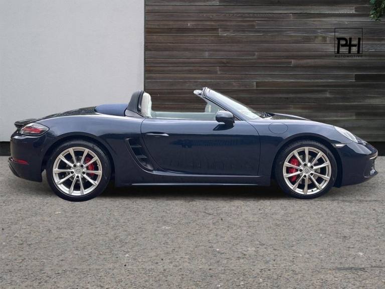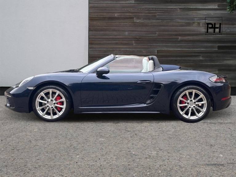 A very elegantly specified example of the fantastically dynamic yet luxurious Porsche 718 Boxster S which features the more powerful 2.5 turbocharged flat 4 engine offering 350bhp and paired with the excellent PDK twin clutch gearbox for blindingly quick gear changes and added efficiency. Our example was ordered brand new in the very classy combination of night blue metallic paintwork overt crayon full leather interior which is paired with extended black leather throughout the upper dashboard and door cards for a more luxurious feel over the standard plastic interior trim. Also fitted to this model is the all important sport chrono package adding the steering wheel mounted mode change which also features launch control, shorter gearshift times and sport response which gives a 20 second period of increased performance which ideal for overtaking situations. Other factory optional extras on this model are the blind spot monitor, 14 way electrically adjustable sports seats, heated seats, heated steering wheel, front and rear park assist with rear camera, bi-xenon headlights, lane change assist, cruise control, auto dimming electrically folding door mirrors, rain sensor and light design package. This example is also supplied to the market with a full service history with its earlier servicing having been carried out with the Porsche main retailers then moving to its latest service in July of this year with a renowned specialist who also carried out the required replacement of the drive belt. All our vehicles are supplied with a comprehensive 6 month parts and labour warranty to include both mechanical and electrical cover which ensures total peace of mind once you are behind the wheel of your new vehicle. Extensions can also be arranged for you at point of purchase to further protect your investment. VIEWING BY APPOINTMENT ONLY - PLEASE CALL OR EMAIL TO ARRANGE A VIEWING..Sports Tailpipes, PDK Gearbox, Leather with Leather Interior - Two Tone - Black - Crayon, Light Design Package, Electrically Folding Exterior Mirrors, Cruise Control, Speed Limit Indicator, Vehicle Key Painted with Key Pouch in Leather, Seat Heating, Heated Multifunction Steering Wheel, Automatically Dimming Mirrors with Integrated Rain Sensor, Lane Change Assist, Bi-Xenon Headlights including Porsche Dynamic Light System - PDLS, Night Blue, ParkAssist - Front and Rear with Reversing Camera, Fully Electric Sports Seats - 14 Way with Memory Package, Sport Chrono Package including Mode Switch, Convertible Top Colour - Blue, 19in Alloy Wheels - Cayman S, 12-Volt Sockets in Passenger Footwell and Centre Console Storage Compartment, 19in Alloy Wheels - Boxster S, ABS - Anti-lock Brake System, Adjustable Fan with Air Recirculation and Defroster Functions, Air Conditioning with Integrated Active Carbon Filter, Alarm System with Ultrasonic Interior Surveillance, Automatic Headlight Activation including Welcome Home Lighting, Automatically Extending Rear Spoiler, Bi-Xenon Headlights with Integrated LED Daytime Running Lights, Brake Calipers - Red, Clothes Hooks on Seat Backrests, Coasting Function, Connect Plus, Convertible Top Colour - Black, Digital Radio, Door Sill Guards - Model Designation Logo, Electrically Adjustable Heated Exterior Mirrors on Door Waist Rails - Aspherical on Drivers Side, Elevated Centre Console with an Uncovered Storage Compartment and a Closed Storage Compartment, Engine Immobiliser with in-Key Transponder - Central Locking with Remote Control, Fixed Roll-Over Protection System, Floor Mats, Full Size Airbags for Driver and Front Passenger, Fully Automatic Fabric Hood, Green Tinted Heat-Insulating Glass, Heated Rear Screen, Hood Lining in Black Fabric, Instrument Dials in Black with Rev Counter in Silver, Integrated 4G-LTE Compatible SIM, Intelligent Lightweight in Aluminium-Steel-Composite Construction, LED Reading Lights Orientation Ignition Lock - Additionally Luggage Compartment and Glove Compartment Lighting, LED Tail Lights with Integrated Four-Point Brake Lights and Reversing Lights, Luggage Compartments at Front and Rear, PCM - Porsche Communication Management - Include Navigation, PORSCHE Logo on Accent Strip and Model Designation on Rear Apron in Silver Colour - High Gloss, Porsche Side Impact Protection - POSIP, Power Steering, Power Windows with One-Touch Operation and Door Seal Protection Function, SPORT Button to Activate Dyn