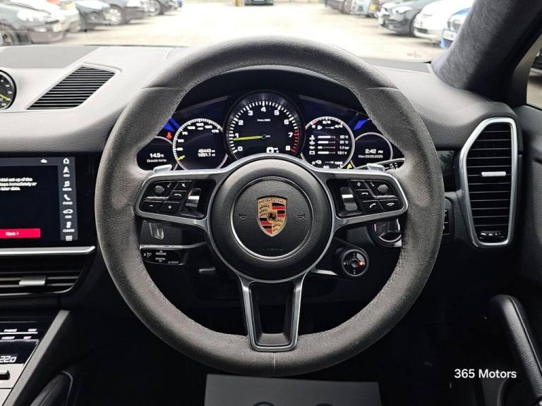 We are pleased to offer this Porsche Cayenne 3.0 V6 E-Hybrid 14.1kWh TiptronicS 4WD finished in Jet Black. A stunning E-Hybrid example with excellent specification including Bose Surround Sound System, Heads-Up Display, ParkAssist with Surround View, 22" GT Design Alloy Wheels, Carbon Interior Package, and much more. Specification Bose Surround Sound System Heads-Up Display ParkAssist Including Surround View 22" GT Design Alloy Wheels in Satin Platinum High Gloss Black Door Handles Electrically Extending Tow Bar System Exterior Mirrors in Exterior Colour Privacy Glass Roof Spoiler in High Gloss Black Black Sports Tailpipes Wheel Centres With Full Porsche Crest Ambient Lighting Automatically Dimming Interior & Exterior Mirrors Exclusive Design Gear Selector Four-Zone Climate Control Carbon Interior Package Alcantara Roof Lining Front Seat Heating Soft Close Doors Sport Chrono Stopwatch Black Partial Leather Seats with Checked Fabric Centres Comfort Access LED Main Headlights in Black with Matrix Beam & Porsche Dynamic Light System Plus PDCC - Porsche Dynamic Chassis Control Automatic Headlight Function with Welcome Home Lighting Connect Plus Cruise Control & Speed Limiter Driver Personalisation Aerodynamic Underbody Protection Four-Point Signature LED DRLs Integrated Porsche 4D Chassis Control Porsche Communication Management Porsche Traction Management Porsche Active Aerodynamics with Adaptive Roof Spoiler Powered Tailgate Power Steering Plus Service & Maintenance: Service history present Fresh oil change just completed Full MOT included Tyres in great condition Additional Information: All HPI Clear Comes with 3-Month Warranty as standard (extendable to 36 months) Low-rate finance packages available Part exchange welcome Please be advised that cosmetic defects and normal wear and tear, such as minor scratches or stone chips, may be present on any vehicle. All information and specifications have been provided to the best of our knowledge. We recommend confirming the listed specifications with a sales representative. Please call our lovely sales team to book a viewing or test drive on 01257 221251. Alternatively, visit our website for more photos, finance applications and access to our live chat system..20in Alloy Wheels - Cayenne Design, 3-point Automatic Seat Belts with Pre-tensioners - Front and Outer Rear Seats and Front Force Limiter - 3-Point Automatic Seatbelt on Central Rear Seat, 4 Doors with Integrated Side Impact Protection, ABS - Anti-lock Brake System, Active Air Intake Flaps, Active Bonnet System, Air Curtains in Wheel Arch Housings, Air Intake Slats with Inlays in Black High-Gloss, Alarm System with Ultrasonic Interior Sensor - Two-Stage Locking - SAFE Function, Automatic Climate Control, Automatic Headlight Activation including Welcome Home Lighting, Automatic Hold Function, B-Pillar Clothes Hook on Driver and Passengers Side, Bottle Holders in Door Panels - Front and Rear, Brake Calipers with Acid Green Finish, Brake Pad Wear Indicator, Bumper System Comprising High-Strength Cross Members and Two Deformation Elements, Central Analogue Rev Counter with Black Dial - Power Meter and Pointer in Acid Green, Charge Port, Connect Plus, Cruise Control with Speed Limiter, Curtain Airbags Along Roof Frame and Side Glazing, Digital Radio, Door Handles Painted in Exterior Colour, Door Sill Guards in Stainless Steel with Model Designation at Front, Driver Personalisation, E-Hybrid Logo on Front Left and Right Wings with Border in Acid Green, Electric Parking Brake, Electric Windows - Front and Rear, Electrically Adjustable - Folding and Heated Exterior Mirrors - Aspherical on Drivers Side - Including Courtesy Lights, Elevated Centre Console with Handles, Engine Immobiliser with in-Key Transponder, Extensive Aerodynamic Underbody Protection, Fine Dust Filter with Active Carbon Filter, Fixed Luggage Compartment Cover, Floor Mats, Four-Point Signature LED Daytime Running Lights, Front End with Integrated Air Intakes and Airblades for Side Air Intakes, Front Light Module with Position Lights and Direction Indicators in LED Light-Guide Technology, Front Passenger Airbag Deactivation Function for Mounting Child Seat on Front Seat, Front Wipers System with Two Speeds - Intermittent Wipe and Rain Sensor, Full Size Airbags for Driver and Front Passenger, Fully Galvanised Steel-Aluminium Hybrid Lightweight Bodyshell, Heated Rear Window with Auto-Off Function, ISOFIX Fastening System for Child Seats on Outer Rear Seats, Illuminated Vanity Mirrors in Sun Visors - Driver and Passenger Sides, Instrument Cluster with Two High-Resolution Displays, Integrated Porsche 4D Chassis Control, Interior Trim Package in Black High-gloss, Keyless Engine Start, Knee Airbags for