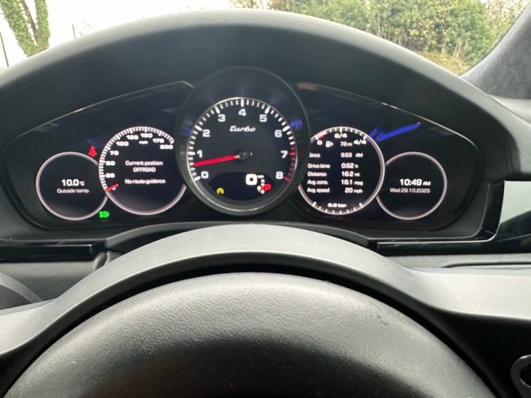 Hampton Car Sales are proud to offer this stunning Porsche Cayenne 4.0T V8 Turbo SUV 5dr Petrol Tiptronic S 4WD Euro 6 (s/s) producing an impressive 550PS, finished in elegant Quartzite Grey Metallic and having covered just 70,000 miles backed by a full service history from Porsche and reputable specialists. This exceptional example boasts around £25,000 of factory options, making it one of the most highly specified Cayenne available. The striking 22-inch Cayenne Sport Classic wheels in black high gloss perfectly complement the high gloss black exterior package and privacy glass, while the adaptive air suspension with level control and PASM ensures superb comfort and handling on any road. The interior exudes luxury with its smooth finish monochrome leather and Alcantara roof lining, enhanced further by 18-way adaptive sports seats with integrated headrests, memory package, and heating for both front and rear passengers. The panoramic roof system floods the cabin with natural light, and entertainment is delivered through the premium Bose surround sound system. Performance and presence are elevated by the sports exhaust system in black, Porsche Surface Coated Brakes (PSCB), and Sport Chrono Package with mode switch for dynamic driving modes. Additional highlights include LED matrix beam headlights with PDLS Plus, reversing camera, exterior mirrors painted in body colour, automatic dimming interior and exterior mirrors, a heated multifunction steering wheel, and Porsche crest wheel centres. This meticulously maintained Cayenne Turbo combines breath-taking performance, everyday usability, and outstanding specification, all backed by over 195 verified 5-star Google reviews from our satisfied Hampton Car Sales customers. Hampton Car Sales is a prestigious dealership run by passionate car enthusiasts committed to excellent customer service. We are an approved AA dealership, offering a 6-month warranty (where applicable) on all vehicles, extendable to 3 years through Warranty Solutions Group. We accept part-exchanges after a brief inspection and aim to offer fair prices. Test drives are welcome, but dont forget your drivers license for insurance. We provide specialist finance options with in-house or remote checks. For more information, call 01604 385335 or visit [Website URL removed] Tailpipes - Black, Centre Console Armrest with Porsche Crest, Heated Multifunction Sports Steering Wheel with Rim in Alcantara, Privacy Glass, Reversing Camera, Sport Chrono Package including Mode Switch, Panoramic Roof System, LED Main Headlights in Black with Matrix Beam including Porsche Dynamic Light System Plus, Smooth Finish Leather - Two Tone - Black-Mojave Beige, 2 Integrated Cup Holders in Front with Variable Diameter, 21in Alloy Wheels - Cayenne Turbo, 3-Point Automatic Seat Belts with Pre-Tensioners - Front and Outer Rear Seats and Front Force Limiter - 3-Point Automatic Seat Belt on Central Rear Seat, Active Bonnet System, Adaptive Air Suspension including Porsche Active Suspension Management - PASM, Adaptive Sports Seats - 18-Way Electric with Integrated Headrests - Memory Package, Air Curtains in Wheel Arch Housings, Alarm System with Ultrasonic Interior Surveillance, Automatic Hold Function, Automatic Tailgate, Automatically Dimming Exterior and Interior Mirrors, B-Pillar Clothes Hook on Driver and Passengers Side, BOSE Surround Sound System, Bottle Holders in Door Panels - Front and Rear, Brake Calipers with White Finish, Brake Pad Wear Indicator, Bumper System Comprising High-Strength Cross Members and Two Deformation Elements, Central Air Intakes in Black - High Gloss, Central Analogue Rev Counter with Black Dial Faces and Turbo Logo, Central Locking with Remote Control, Climate Control with Separate Temperature Settings for Driver and Front Passenger, Connect Plus, Cruise Control with Speed Limiter, Curtain Airbags for Cover Across the Entire Roof Frame and Side Glazing from the A-pillar to C-pillar, Dark Walnut Interior Package, Daytime Running Lights with 4-Point LED Spotlights in Each Main Headlight, Digital Radio, Door Handles Painted in Exterior Colour, Door Side Trim Painted in Exterior Colour, Door Sill Guards in Stainless Steel with Model Designation at Front and Cayenne Designation at Rear, Double Sun Visors for Driver and Front Passenger, Driver Personalisation, Driving Light Assistant including Automatic Coming Home Lights, Electric Parking Brake, Electric Windows - Front and Rear, Electrically Adjustable Heated Exterior Mirrors - Electrically Retractable, Elevated Centre Console with Handles with Turbo Specific Trims, Engine Immobiliser and Safe Lock System, Extensive Underbody Protection, Exterior Mirrors - Painted - Black High Gloss, Fine Dust Filter with Active Carbon Filter, Floor Mats, Front End with Significantly