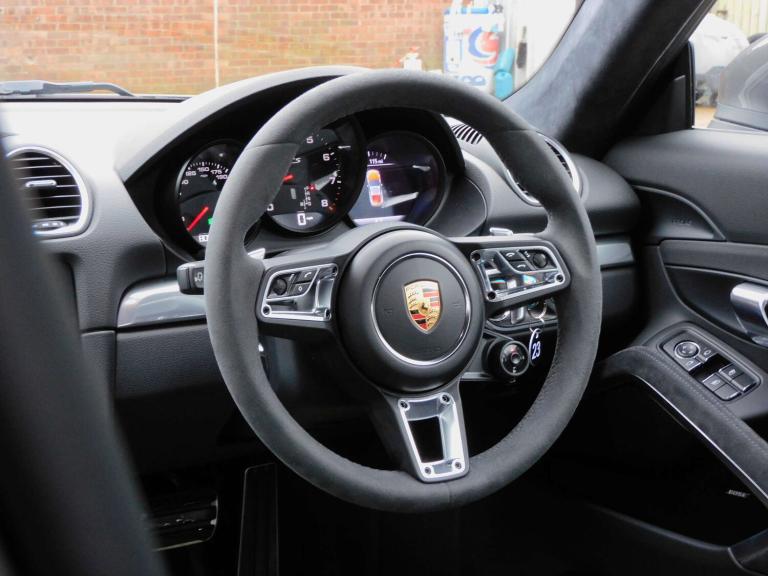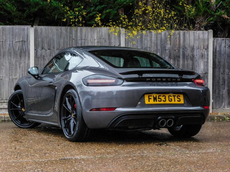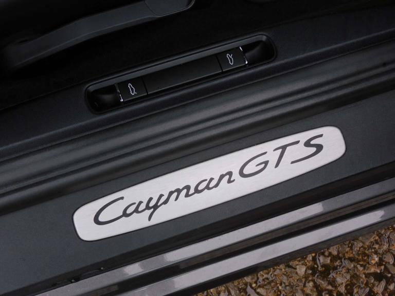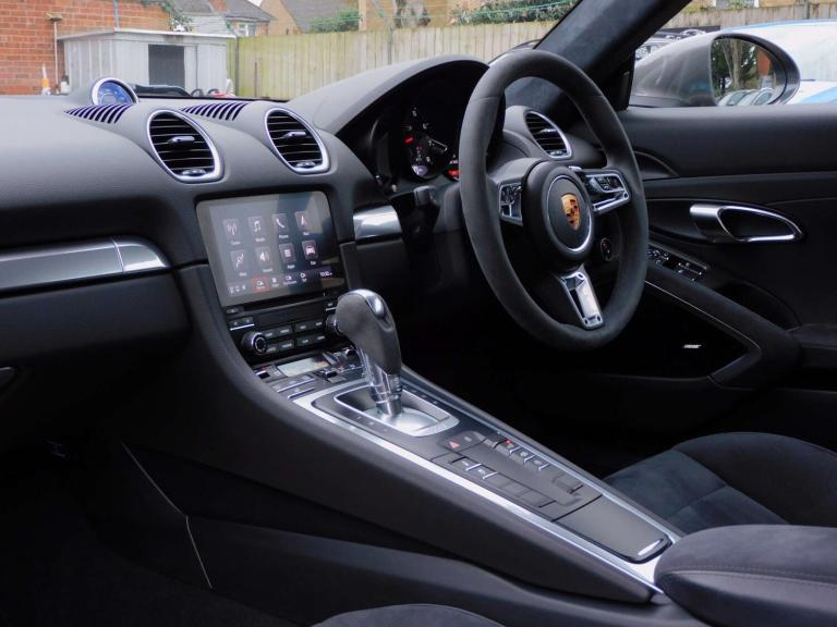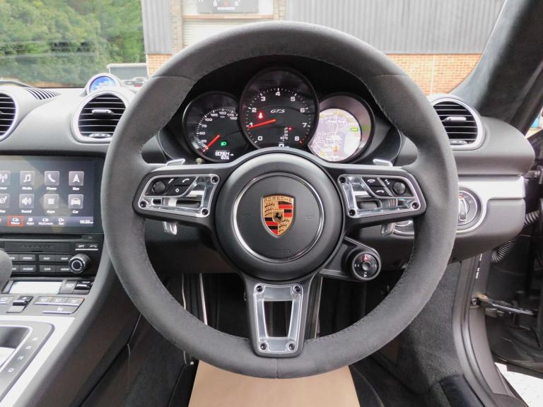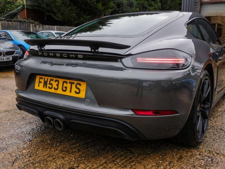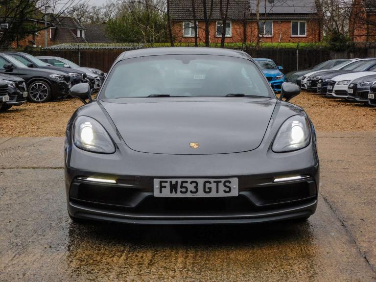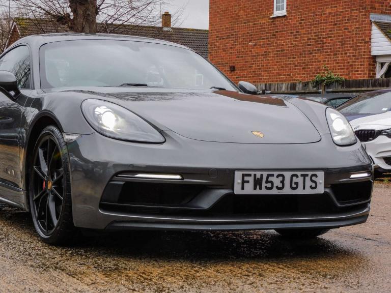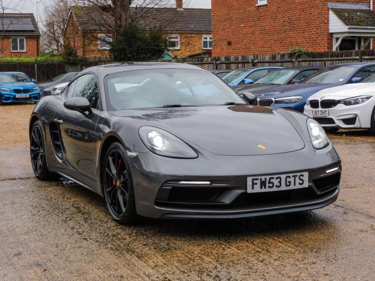 We are pleased to offer this stunning Porsche 718 Cayman GTS finished in Agate Grey metallic. Powered by a 2.5-liter turbocharged flat-four petrol engine producing 360 bhp with an automatic 7 speed gearbox. This vehicle also has 2 previous owners and comes with 2 keys and full service history. Included with the sale is 6 months premium warranty, 12 months MOT, 12 months breakdown cover & a fresh service. We offer very competitive £0 deposit finance options starting at 8.9% with Evolution Funding. We accept all part exchanges and offer FREE delivery up to 100 miles in our Brian James enclosed trailer.The spec on this vehicle is; 20-inch Carrera S alloy wheels, BOSE premium sound system, Apple/Android CarPlay, Heated steering wheel, Heated seats, Switchable sports exhaust system, Sports Chrono package, GTS embossed headrests, Park assist front & rear, Two-zone climate control, Agate Grey special colour paintwork, Auto dimming mirrors with integrated rain sensors, Satellite navigation system, Paddle shift gear change, Bluetooth with media connectivity, DAB digital radio, Auto lights & Auto wipers, Auto extending rear spoiler.If you have any questions please do not hesitate to contact us! Thanks for viewing.