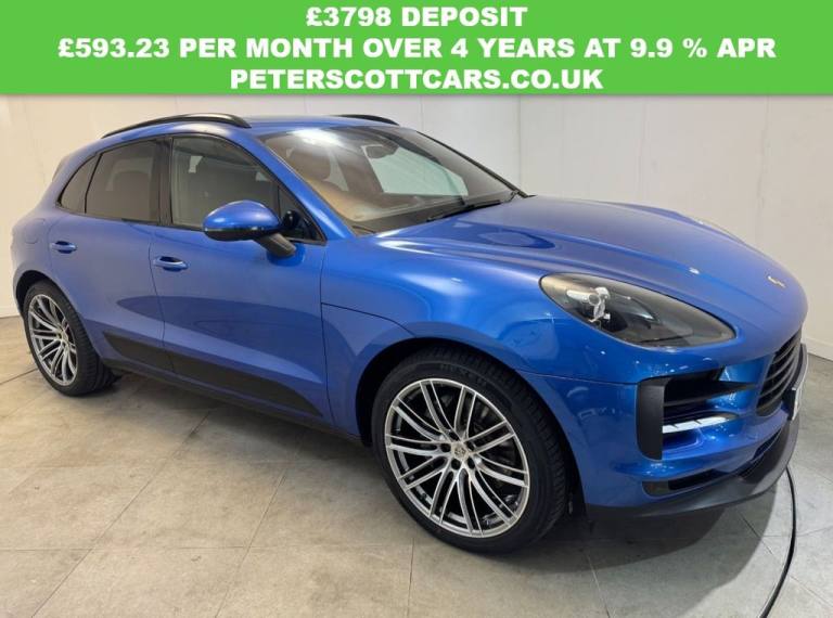 Stunning, high specification Porsche Macan finished in the desirable Miami Blue with Electric panoramic sunroof, Air suspension, 21" Alloy wheels, Upgraded Smooth leather interior, Bose sound system, Rear view camera, Heated front seats, 14 way power seats with drivers memory, Bluetooth audio and much more. Cared for and maintained to a very high standard with a 6 stamp Porsche main agent service history. This phenomenal specification Porsche Macan has been independently inspected by the AA for your added peace of mind. We have uploaded a full Hd walkaround video to show the quality both inside and out of this Porsche Macan. Visit [Website URL removed], to reserve this car and apply for finance. Peter Scott Cars is an Award Winning family run dealership with over 30 years experience in the sourcing and supply of high quality vehicles..14-Way Power Seats - Front with Memory Package, 18in Alloy Wheels - Macan S, 2-Way Headrests Except For Central Rear Seat, 21in Alloy Wheels - 911 Turbo Design, ABS - Anti-lock Brake System, Accent Trim in Silver-Coloured Finish, Active Air Intake Flaps, Air Suspension with Self-levelling - Ride Height Control and Porsche Active Suspension Management - PASM, Alarm System with Ultrasonic Interior Surveillance, Auto-Hold Function, Automatic Headlight Activation including Welcome Home Lighting, Automatic Tailgate, B- Pillar Clothes Hooks on Driver and Passenger Side, BOSE Surround Sound System, Bottle Holders in Door Panels - Front and Rear, Brake Calipers with Titanium Coloured Finish, Bumpers Comprising High-Strength Cross Members and Two Deformation Elements Each with One Threaded Fixture Point for Towing Eye Contained in On-Board Tool Kit, Central Locking with Remote Control, Climate Control - Three Zone, Coasting Function, Combination Floating Calipers at Rear, Comfort Seats - Front, Compass Display on Dashboard, Connect Plus, Cruise Control with Speed Limiter, Curtain Airbags for Cover Across the Entire Roof Frame and Side Glazing from the A-pillar to C-pillar, Digital Radio, Driver Memory Package, Electric Parking Brake, Electric Windows - Front and Rear - Remote Closing Function - Anti Trap Protection and One Touch Operation, Electrically Adjustable and Heated Electrically Folding Exterior Mirrors - Aspherical on Drivers Side, Engine Immobiliser with in-Key Transponder, Engine Water Cooled with Thermal Management, Fixed - Removable Luggage Compartment Cover, Floor Mats, Folding Front Centre Armrest - with Fore-Aft Adjustment, Four-Way Headrests - Front, Front End with Integrated Air Intake, Front Light Units with Position Lights and Direction Indicators with LED Guide Technology, Front Wipers System with Two Speeds - Intermittent Wipe and Rain Sensor, Full Size Airbags for Driver and Front Passenger, Fully Galvanised Body, Head Restraints Design - Porsche Crest Embossed - Front, Heated Rear Window with Auto-Off Function, Hi-Fi Sound System with 10 Speakers and a Total Output of 150 Watts with Integrated Amplifier and Digital Signal Processing, High-level Third Brake Light - LED Integrated into Roof Spoiler, Instrument Cluster with High-Resolution 4.8in Colour Display - Gear Indicator - Service Interval Display - External Temperature Indicator - Fuel Gauge and Various Warning Displays, Integrated 4G-LTE Compatible SIM, Integrated Cluster of Three Round