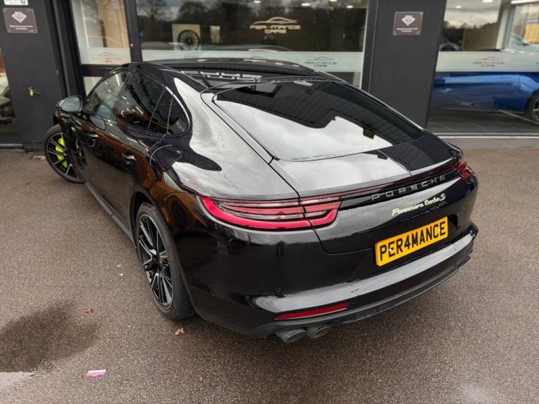 PER4MANCE CARS ARE PROUD TO OFFER THIS VERY HIGH SPEC AND MUCH DESIRED 2020 PORSCHE PANAMERA 4.0 V8 E-HYBRID TURBO S (680PS) FINISHED IN JET BLACK METALLIC WITH FULL BLACK LEATHER SEATS, THIS COMES WITH FULL MAIN DEALER SERVICE HISTORY, MASSIVE SPEC ALL LISTED AND PHOTO OF OPTIONAL EXTRAS, ABSOLUTELY STUNNING VEHICLE. CAR MAY NOT BE KEPT ON SITE PLEASE CALL FOR AN APPOINTMENT! Full dealer facilities available, Finance available, please apply via our website or call for a quote. We have a team of experienced buyers who hand pick our cars from all parts of the UK so you can buy with confidence all vehicles are HPI Clear and prepared to the highest standard. We believe in providing our customers with a personal and first class level of service, Full dealer facilities available, Part exchanges welcomed. CONTACT OUR EXPERIENCED SALES TEAM ON [Phone number removed] OR EMAIL [Email address removed. Click Email button to contact us.]. .Sport Chrono Stopwatch Instrument Dial in White, Side Window Trims - Black High Gloss, 7.2 kW On-Board Charger, Porsche Crest on Head Restraints, Interior Package - Black High-Gloss Finish, Cupholder Covers - Front, Sports Tailpipes - Black, Storage Package, Privacy Glass, ParkAssist - Front and Rear Including Reversing Camera and Surround View, Ambient Lighting, Lane Keep Assist including Speed Limit Indicator, Steering Wheel - Heated, 2+1 Rear Seat System, Porsche InnoDrive including Adaptive Cruise Control, LED Main Headlights with Matrix Beam including Porsche Dynamic Light System Plus, Panoramic Roof System, Burmester High-End 3D Surround Sound System, Jet Black, 21in Alloy Wheels - Exclusive Design Painted in Jet Black Metallic, 12V Sockets in the Front Centre Console Storage Compartment, 14-Way Power Seats - Front with Memory Package, 21in Alloy Wheels - 911 Turbo Design, 3.6kW On-Board Charger, ABS - Anti-lock Brake System, Active Bonnet System, Adaptive Air Suspension including Porsche Active Suspension Management - PASM, Adaptive Rear Spoiler - Four-way in Exterior Colour, Air Outlet Trim in Front Wings Painted in Exterior Colour, Armrest - Front Centre Console with Integrated Storage Compartment, Automatic Headlight Activation including Welcome Home Lighting, Automatic Tailgate, Automatically Dimming Exterior Mirrors, Automatically Dimming Rear View Mirror, BOSE Surround Sound System, Brake Calipers in Acid Green, Central Analogue Rev Counter with Black Dial Face - Turbo S Logo - Power Meter and Pointer in Acid Green, Comfort Access, Connect Plus, Continuously Adjustable Door Brake, Courtesy Lighting on Mirror, Cruise Control, Curtain Airbags Along Entire Roof Frame and Side Glazing from the A-Pillar to the C-Pillar, DAB Digital Radio, Dark Walnut Interior Package, Daytime Running Lights with Four LED Spotlights in Each Main Headlight, Door Sill Guards in Brushed Aluminium with Model Designation at Front, E-hybrid Logo on Front Doors Left and Right in High-Gloss Silver Colour with Edging in Acid Green, Electric Parking Brake, Electric Windows - Front and Rear, Electrically Adjustable - Folding and Heatable Exterior Mirrors - Aspherical on Drivers Side, Engine Bonnet - Rear Tailgate - Doors - Side Panels - Roof and Front Wings in Aluminium, Engine Immobiliser with Remote Central Locking and Alarm System with Radar-Based Interior Surveillance, Floor Mats, Four Doors with Integrated Side Impact Protection Elements, Four Individual Seats with Contin