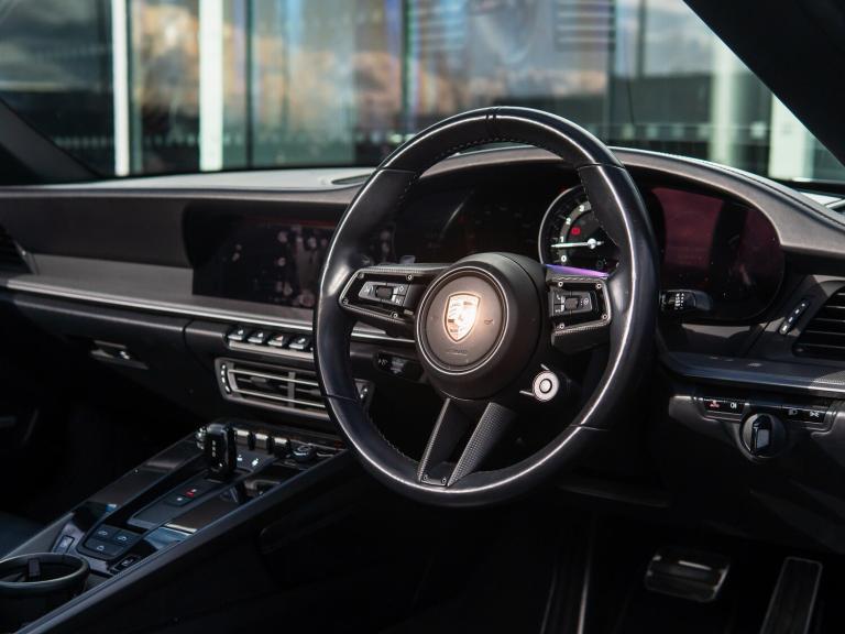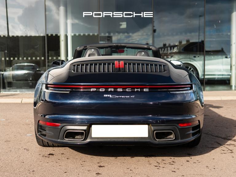 For sale is a 2020 Porsche 911 3.0T 992 Carrera 4 Convertible 2dr Petrol PDK 4WD Euro 6 (s/s) (385 ps), finished in elegant Night Blue. This convertible presents a harmonious blend of dynamic performance and refined comfort, offering seating for four within a two-door body style. The vehicle’s exterior is complemented by 20-inch front and 21-inch rear Carrera S alloy wheels, further accentuated by the distinctive 911 logo.The interior specification includes heated multifunction GT Sports steering wheel in leather with matt carbon panel, providing both comfort and a touch of sophistication. The Light Design Package enhances the cabin ambience, while the LED main headlights with Porsche Dynamic Light System (PDLS) ensure excellent illumination and visibility. The Porsche crest is elegantly embossed on the head restraints, underlining the marque’s attention to detail.Advanced technology features include the BOSE? Surround Sound System, delivering a high-quality audio experience throughout the cabin. The Sport Chrono Package is included, offering enhanced driving dynamics and configurable driving modes. Power Steering Plus ensures responsive and precise handling in various driving conditions.Convenience is further emphasised with automatically dimming mirrors equipped with an integrated rain sensor and electrically folding exterior mirrors. The vehicle is finished in Night Blue, a striking and timeless colour, and features seating for four occupants across two doors.Key features: Power Steering Plus, Light design package, BOSE? Surround Sound System, Sport Chrono Package.Options: 20in Front 21in Rear Alloy Wheels - Carrera S, 911 Logo, Automatically Dimming Mirrors with Integrated Rain Sensor, BOSE Surround Sound System, Electrically Folding Exterior Mirrors, Heated Multifunction GT Sports Steering Wheel Leather with Matt Carbon Panel, LED Main Headlights including Porsche Dynamic Light System - PDLS, Light Design Package, Night Blue, Porsche Crest on Head Restraints, Power Steering Plus, Sport Chrono Package.This Porsche 911 Carrera 4 Convertible offers a distinguished specification with a focus on comfort, technology, and performance, making it a suitable choice for those seeking an open-top driving experience in a renowned sports car.For further details or to arrange a viewing, please contact us.