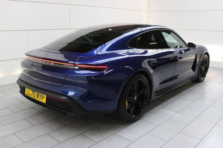 NEW IN STOCK. GENTIAN BLUE - METALLIC. HPI CLEAR. DATE OF REGISTRATION: 18/12/2020. ONLY one registered keeper from new. 2 Keys. Highly desirable options when ordered new include: Panoramic roof, fixed glass, BOSE Surround Sound-System, Seat massage function (front seats, incl. seat ventilation), Roof lining in Race-Tex, Comfort Seats (14-Way, electric) with memory package, ParkAssist including Surround View, Wheels painted in Jet Black Metallic, Comfort Access, Mobile Charger Connect, Passenger display, Seat Heating (front and rear), Lane Change Assist, Accent Pack Dark Silver, Exterior mirror lower trims painted including mirror base painted in black (high-gloss), Privacy glass, 2+1 rear seat system, Ambient lighting, Electric folding exterior mirrors, Public charging cable (Type 2), PORSCHE Logo LED door courtesy lights, 21-Inch Mission E Design Wheels, 10 - Piston Aluminium Monobloc Fixed Callipers (front), 16.8 Inch Curved Display, Adaptive Air Suspension including Porsche Active Suspension Management - PASM, Automatic Headlight Activation including Welcome Home Lighting, Automatic Tailgate, Automatically Dimming Exterior and Interior Mirrors, Callipers Painted in Yellow Finish, Cruise Control including Adaptive Speed Limiter, Four-Piston Aluminium Monobloc Fixed Brake Callipers at Rear, Front Side Airbags, Keyless Drive, LED Matrix Headlights including Porsche Dynamic Light System Plus, Parking Pre-Climatization, Porsche Communication Management PCM Includes Navigation Module Mobile Phone Preparation Audio Interface and Voice Control System, Porsche Stability Management - PSM Including ABS with Extended Brake Functions. Unbeatable value for money with this level of specification. AA Approved Dealer. 12 month AA Breakdown Assistance included. Finance available. Part Exchange Welcome. Visit our website: [Website URL removed] to view our latest diversified stock listings. .Passenger Display, Mobile Charger Connect, Lane Change Assist, Gentian Blue, Porsche Logo LED Door Courtesy Lights, ParkAssist Including Surround View, Comfort Access, Seat Massage Function - Front Including Seat Ventilation, Ambient Lighting, Comfort Seats Front 14-Way Electric with Memory Package, Wheels Painted in Jet Black Metallic, Fixed Glass Panoramic Roof, Privacy Glass, 10-Piston Aluminium Monobloc Fixed Caliper Brakes at Front, 21in Alloy Wheels - Mission E Design, Auto-Deploying Door Handles, Brake Calipers Painted in Yellow Finish, Bumpers Comprising High-Strength Cross Members and Two Deformation Elements Each with One Threaded Fixture Point for Towing Eye Contained in On-Board Tool Kit, Electric Windows - Front and Rear, Electrically Adjustable and Heated Exterior Mirrors - Aspherical on Drivers Side, Engine Bonnet - Rear Tailgate - Doors - Side Panels - Roof and Front Wings in Aluminium, Exterior Mirror Lower Trims Painted in Exterior Colour Including Mirror Base in Black - High-Gloss, Four-Piston Aluminium Monobloc Fixed Brake Calipers at Rear, Fully Galvanised Steel-Aluminium Hybrid Lightweight Bodyshell, Heated Rear Window with Auto-Off Function, Light Strip, Lower Valance with Inlays in Carbon, Model Designation on Tailgate Painted in Black - High-Gloss, Porsche Active Aerodynamics with Active Air Intake Flaps and Adaptive Rear Spoiler, Porsche Logo in Glass Look Integrated into Rear Light Strip, Powered Charging Port Cover, Rear Diffuser in Louvered Design with Inlay in Carbon, Roof in Aluminium Contoured Design with Dynamic Recess Profile, Side Window Trims - Black High Gloss, SportDesign Sideskirts with Inlays in Carbon, Taycan Badge on the Centre Console, Thermally Insulated Glass All Round, Upper Valance with Vertical Air Intakes - Air Curtain, Wheel Centres with Full-Colour Porsche Crest, 11kW AC On-Board Charger, 12v Electrical Socket in Rear Luggage Compartment, 12v Electrical Socket in the Centre Console Storage Compartment, 16.8in Curved Display, 2 USB-C Charge Ports in the Rear, 2 USB-C Connectivity and Charge Ports in the Centre Console Storage Compartment, 4-Point LED Daytime Running Lights, 50kW DC On-Board Charger for use of Public Charging Stations with a voltage of 400V, Adaptive Air Suspension including Porsche Active Suspension Management - PASM, Aluminium Double-Wishbone Front Axle, Aluminium Multi-Link Rear Axle, Automatic Headlight Activation including Welcome Home Lighting, BOSE Surround Sound System with 14 Speake