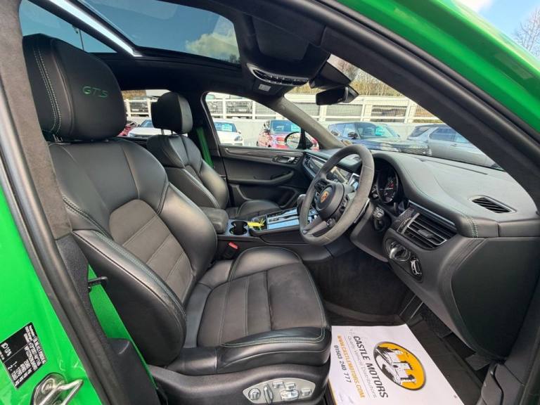 440PS GTS in stunning Python Green with Black GTS leather and Suede, exceptional specification facelift GTS with approx. £16,500 in cost options. GTS Sports Package, special paintwork, PTV Porsche Torque Vectoring Plus, panoramic glass sunroof, interior Carbon Fibre package, RaceTex steering wheel, Python Green stitching and Seatbelts, BOSE HiFi, reversing camera, Air Ionisation, heated steering wheel and heated seats, 18 way memory sports seats, Carbon Fibre illumination entry guards, Black Exterior Package, Black roof rails, 21 inch Black wheels with Red calipers, Black Finish switchable sports exhaust, PaSM Porsche Aur Suspension, Sport Chrono, Comfort Access, Smartphone compartment with wireless charging, sideblades in Black high gloss, LED headlights in Black with PDSL+ (Porsche Dynamic Light System Plus), Power Steering Plus & more. One owner then ourselves, covered only 37,250 miles with service history and must be seen All of our vehicles are ready for same day drive away. CASTLE MOTORS purpose-built showroom & forecourt has a wide range of cars for sale, including some of the worlds most prestigious automobiles. Founded in 1972, we are open 7 days a week. All of our vehicles are presented to the very highest standards possible having gone through our own comprehensive multi-stage preparation. Supplied finance figures are only a guide. Every effort has been made to ensure the accuracy of the above info but errors can occur please check with our sales team. .14-Way Power Seats - Front with Memory Package, 21in Alloy Wheels - RS Spyder Design in Matt Black, ABS - Anti-lock Brake System, Accent Trim in Silver-Coloured Finish, Active Radiator Grille Shutters, Adaptive Air Suspension including Porsche Active Suspension Management - PASM, Alarm System with Ultrasonic Interior Surveillance, Analogue Clock on Dashboard, Apple CarPlay with Siri Voice Recognition, Auto-Hold Function, Automatic Headlight Activation including Welcome Home Lighting, Automatic Tailgate, B- Pillar Clothes Hooks on Driver and Passenger Side, BOSE Surround Sound System, Bottle Holders in Door Panels - Front and Rear, Brake Calipers - Red, Bumpers Comprising High-Strength Cross Members and Two Deformation Elements Each with One Threaded Fixture Point for Towing Eye Contained in On-Board Tool Kit, Climate Control - Three Zone, Combination Floating Calipers at Rear, Comfort Access, Comfort Ambient Lighting Package, Connect Plus, Cruise Control with Speed Limiter, Curtain Airbags for Cover Across the Entire Roof Frame and Side Glazing from the A-pillar to C-pillar, DAB Digital Radio, Digital Boost Pressure Gauge in the Colour Display of the Instrument Cluster, Door Sill Guards in Aluminium with Model Designation at Front - Macan GTS, Driver Memory Package, Dynamic Cornering Lights, Electric Parking Brake, Electric Windows - Front and Rear - Remote Closing Function - Anti Trap Protection and One Touch Operation, Electrically Adjustable and Heated Electrically Folding Exterior Mirrors - Aspherical on Drivers Side, Engine Immobiliser with in-Key Transponder, Fixed - Removable Luggage Compartment Cover, Floor Mats, Folding Front Centre Armrest - with Fore-Aft Adjustment, Four-Way Headrests - Front, Front Apron Middle Section - Black Matt, Front Light Units with Position Lights and Direction Indicators with LED Guide Technology, Front Wipers System with Two Speeds - Intermittent Wipe and Rain Sensor, Full Size Airbags for Driver and Front Passenger, Fully Galvanised Body, GTS Leather Interior Package - Black-Crayon, Heated Multifunction GT Sports Steering Wheel, Heated Multifunction GT Sports Steering Wheel with Rim in Race-Tex, Heated Rear Window with Auto-Off Function, High-level Third Brake Light - LED Integrated into Roof Spoiler, Illuminated Door Sill Guards in Carbon Including Loading Edge Protection, Instrument Cluster with High-Resolution 4.8in Colour Display - Gear Indicator - Service Interval Display - External Temperature Indicator - Fuel G
