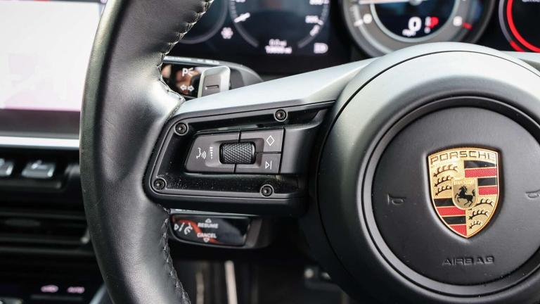 Electric slide/tilt glass sunroof (3FE), Side Skirts painted in Exterior Colour (VR4), PORSCHE’ logo LED door courtesy lights (UD1), Exclusive Design fuel filler cap (2W6), PASM Sport Suspension (-10 mm) (1BV), Sports exhaust system (tailpipes in Silver) (0P5), Tyre sealing compound and electric air compressor (1G8), Heated GT sports steering wheel in leather (2PJ), Storage package (QE1), Sun visors in Race-Tex (5XK), Door Sill Guards Carbon matt, illuminated (7M8), Exclusive design taillights (8VH), Privacy glass (4KF), ParkAssist including Surround View (KA6), HomeLink® (VC2), Porsche Entry & Drive (4F2)