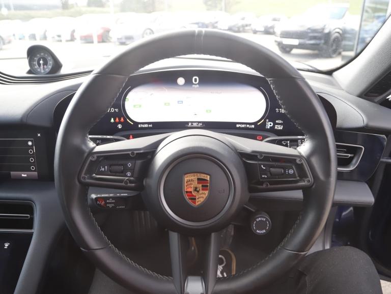 For sale: Porsche Taycan Performance Plus 93.4kWh 4S Saloon 4dr Electric Auto 4WD (11kW Charger) (571 ps), 2021, Finished in BluePresenting a 2021 Porsche Taycan Performance Plus 4S Saloon, finished in an elegant Blue and offering a sophisticated electric driving experience. This vehicle features a four-door saloon body style and comfortably seats four, with the optional 4+1 seats system for added flexibility.This Taycan is equipped with a comprehensive selection of options designed to enhance comfort, aesthetics, and driving enjoyment. The interior benefits from 18-way Adaptive Sports Seats in the front with memory package, complemented by the Porsche Crest on the headrests and a Heated GT sports steering wheel in leather. The Accent Package in Dark Silver and Ambient Lighting provide a refined cabin atmosphere, while the Door Sill Guards in Black Brushed Aluminium and Side Window Trims in Black High Gloss underline the car’s sophisticated styling.For added convenience and safety, the vehicle includes ParkAssist with Surround View, Automatically Dimming Exterior and Interior Mirrors, Electrically Folding Exterior Mirrors painted in the exterior colour, and the Storage Package. Wheel Centres with Full-Colour Porsche Crest and the Porsche Logo LED Door Courtesy Lights further enhance the distinctive appeal.The driving experience is enriched by features such as the Sport Chrono Package including mode switch, Porsche Electric Sport Sound, and Power Steering Plus. The exterior is both stylish and practical, with black high-gloss side window trims and exterior mirrors, and the full-colour Porsche crest on the wheel centres.Key features: Sport Chrono Package incl. mode switch, 18-way Adaptive Sports Seats with memory package, ParkAssist including Surround View, Heated GT sports steering wheel in leather.Options: 18-Way Adaptive Sports Seats - Front with Memory Package, 4+1 Seats System, Accent Package in Dark Silver, Ambient Lighting, Automatically Dimming Exterior and Interior Mirrors, Door Sill Guards in Black Brushed Aluminium, Electrically Folding Exterior Mirrors, Exterior Mirrors Painted in Exterior Colour, Heated Steering Wheel -i.c.w Leather Interior, ParkAssist Including Surround View, Porsche Crest on Headrests, Porsche Electric Sport Sound, Porsche Logo LED Door Courtesy Lights, Power Steering Plus, Side Window Trims - Black High Gloss, Sport Chrono Package, Storage Package, Wheel Centres with Full-Colour Porsche Crest.All Approved Porsche’s come