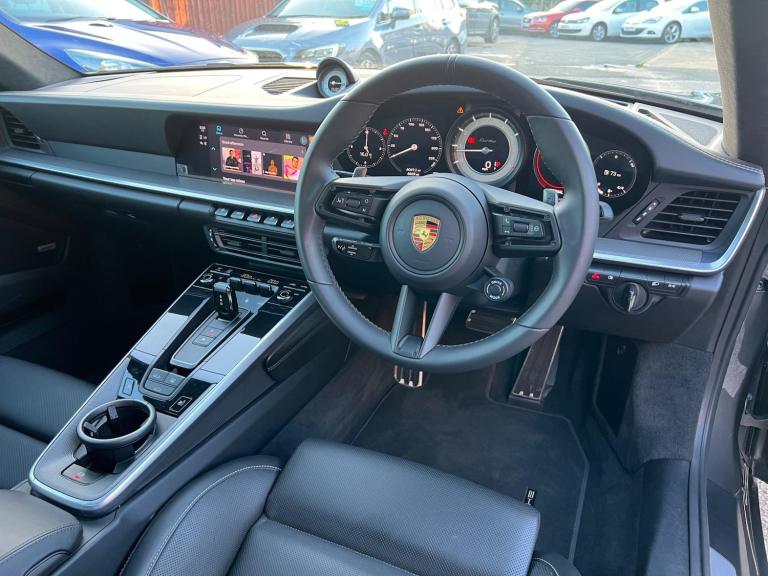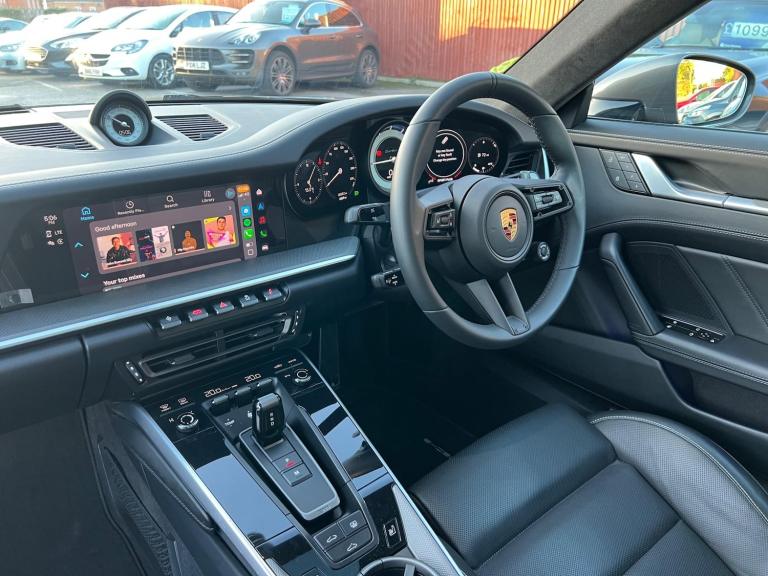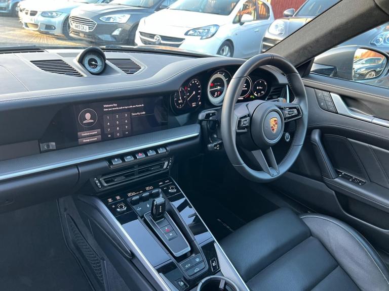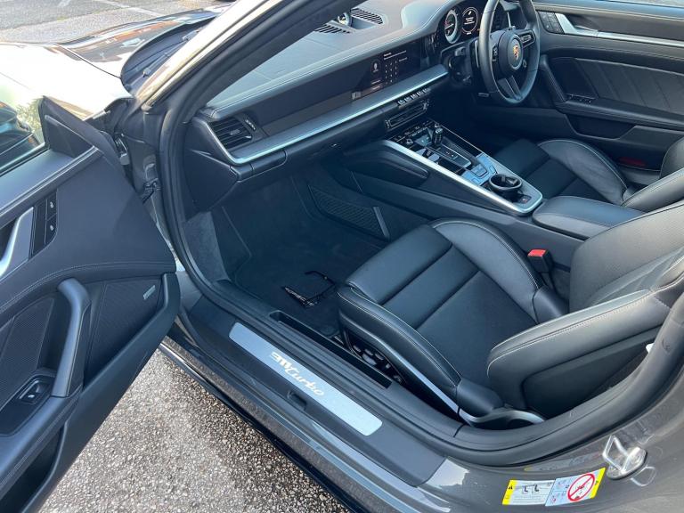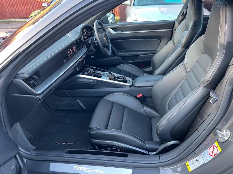 GTECHNIQ TOTAL SURFACE PROTECTION WITH 5 years guarantee. Also PPF protection to the whole car done when car was nearly new. Amazing spec, many of the Turbo s options without the price tag of the Turbo s. First service was done at Porsche Reading in April 2024. Paint protection film, unmarked alloys. 2 x keys. Warranty from Porsche extended to April 2027. VERY HIGH FACTORY SPEC Features Include: , tinted led main headlights with matrix beam including porsche dynamic light system plus - pdls plus, sports exhaust system with tailpipes in black, rear side air intakes painted in gloss black, pasm sport suspension - 10mm lowered, pdcc - porsche dynamic chassis control, 18 way adjustable sport seats, leather - black, protection foil - front, gtechniq total surface protection with 5 years guarantee, power steering plus, wheels painted in high gloss black, exterior mirror bases painted in gloss black, exterior package in black high gloss, electric glass slide and tilt sunroof, sport chrono package with porsche design clock, 20in front 21in rear alloy wheels - 911 turbo s exclusive design wheels, wheel centres with full-colour porsche crest, aluminium pedals, deletion of model designation, porsche entry, lightweight and noise insulated glass including privacy glass, exclusive design tail light, porsche crest logo on seats, brake calipers - painted in black, electrically folding exterior mirrors, privacy glass, tyre sealing compound and electric air compressor, porsche crest on head restraints, leather - black - crayon stitching, homelink, door trim package in leather, vehicle documentation folder in leather, exterior package painted, 2 usb-c ports in centre console main storage compartment lid - 12v socket in passenger footwell, 20in front 21in rear alloy wheels - 911 turbo wheels, ascending centre console with storage compartment, automatic headlight activation including welcome home lighting, automatically dimming mirrors with integrated rain sensor, bose surround sound system, clothes hooks on seat backrests, cruise control, digital display for selected gear in rev counter, digital radio, door handles - trim strips on dashboard - door panels and centre console in light silver - decorative inlays in diamar darksilver, door sill guards in brushed aluminium with model designation, driver memory package, dual auxiliary led light units in front bumper with position lights, direction indicators and side indicators, eu ecall emergency system, electric parking brake,