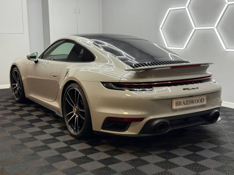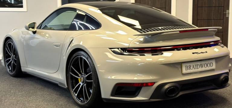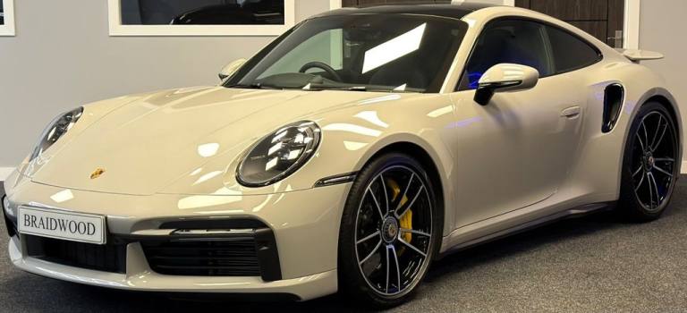 Finished inn Crayon with Black Leather interior. This car comes supplied 2 Keys, Full Porsche Main Dealer Service History, MOT and 6 Months Full Parts and Labour Platinum Warranty. Key Features include, Climate Control, Cruise control, Heated Seats, Navigation, Reverse Camera, Front and Rear Parking Aid, Dynamic LED Matrix Headlights, Electric Tilt and Slide Glass Panoramic Glass Roof, BOSE Sound System, Diamond cut Alloy Wheels, Electric Front Seats with Memory Function, Rear Privacy Glass, Sports Exhaust System with Black Tailpipes, Heated Steering wheel, DAB, Apple Car Play, Sport Chrono Pack, LED Daytime Running Lights All Cars at Braidwood Motor Company are hand picked and are given a full inspection at our workshop before they are available for sale. Every car comes with a minimum 6 months executive warranty. Low rate finance packages are available. For More Information please call on 01506 444422 ***NATIONWIDE DELIVERY AVAILABLE***.2 USB-C Ports in Centre Console Main Storage Compartment Lid - 12V Socket in Passenger Footwell, 20in Front 21in Rear Alloy Wheels - 911 Turbo S, Adaptive Sports Seats Plus -18-Way- Featuring Electric Adjustment of all Seat Functions Including Seat Side Bolsters, Ascending Centre Console with Storage Compartment, Automatic Headlight Activation including Welcome Home Lighting, Automatically Dimming Interior and Exterior Mirrors with Integrated Rain Sensor, BOSE Surround Sound System, Clothes Hooks on Seat Backrests, Crayon, Cruise Control, Digital Display for Selected Gear in Rev Counter, Digital Radio, Door Handles - Trim Strips on Dashboard - Door Panels and Centre Console in Light Silver - Decorative Inlays in Diamar Darksilver, Door Sill Guards in Brushed Aluminium with Model Designation, Dual Front Light Units with Position Lights - Direction Indicators - Side Indicator Lights - All Built on LED Technology, Electric Adjustment of Backrest Angle - Seat Height Fore-Aft Position - Squab Angle and Length of the Seat Cushion - Lumbar Support, Electric Glass Slide and Tilt Sunroof, Electric Parking Brake, Electromechanical Power Steering with Variable Steering Ratio and Steering Pulse Generator, Embossed Leather on Front Seat Centres - Front Side Bolsters - Front Seat Head Restraints, Engine Compartment Cover Grille with Vertical Slats in Silver Colour - High-Gloss, Engine Immobiliser, Engine Water Cooled with Thermal Management, EU eCall Emergency System, Exterior Mirror Lower Trim in Exterior Colour, Exterior Mirrors on Door Waist Rails - Electrically Adjustable and Heatable - Aspherical on Drivers Side, Floor Mats, Forged Alloy Wheels with Central Locking in Two-Tone Look - Wheel Hub Cover with Coloured Porsche Crest, Front Apron with Side Air Intakes - Active Cooling Air Flaps and Air Blades in Black, Full-Size Airbags for Driver and Front Passenger, Glove Compartment - Lockable and Storage Compartment in Each Door, Green Tinted Thermally Insulated Glass, Heated Rear Screen, Illuminated Vanity Mirrors in Sun Visors - Driver and Passenger Sides, Instrument Cluster with Central Analogue Rev Counter - Two 7in TFT Display, Intelligent Lightweight Construction in Aluminium-Steel-Composite Construction, Interior LED Lighting - Reading Lights - Orientation - Ignition Lock - Luggage Compartment - Footwell - Glove Compartment and Door Lighting, ISOFIX Child Seat Mounting Points on Front Passenger Seat, Keyless Go, LED Matrix Headlights including Porsche Dynamic