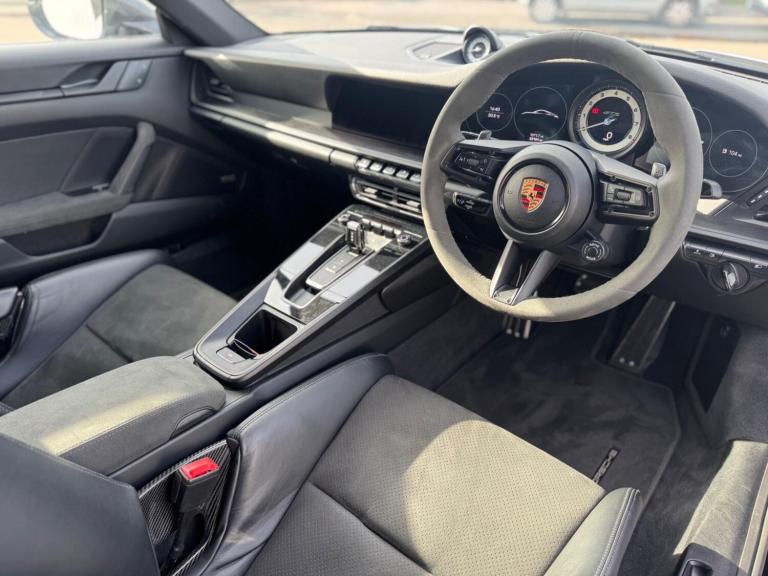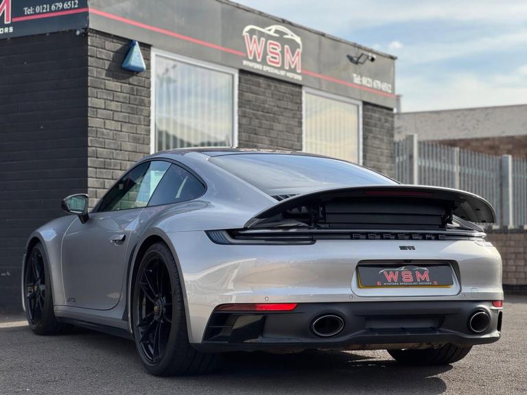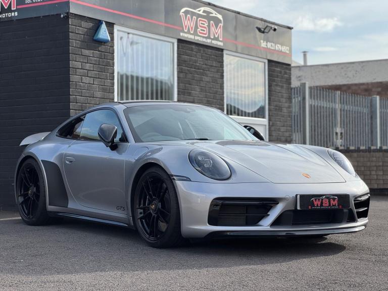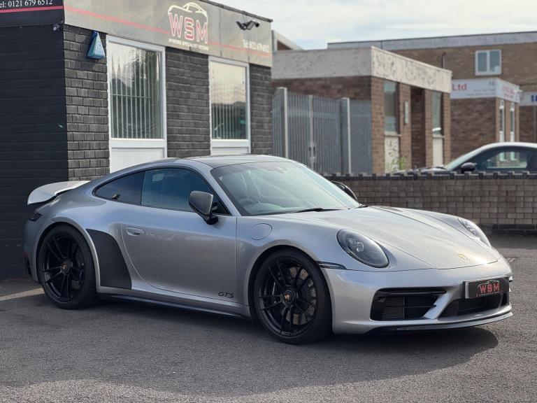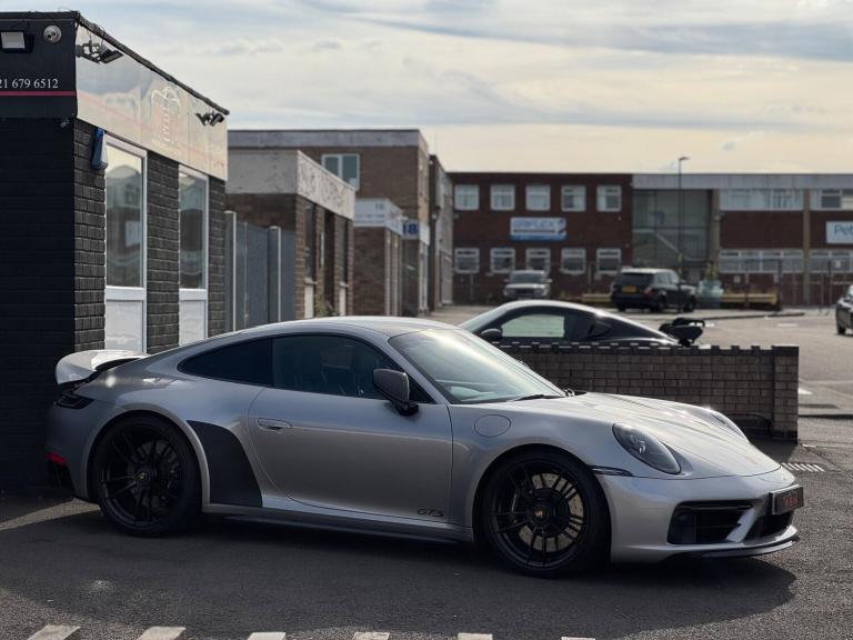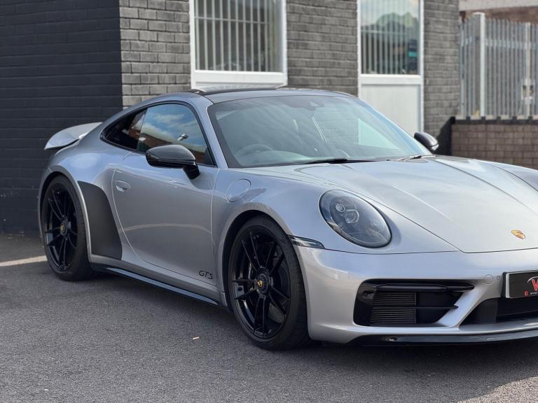 Wynford Specialist Motors Are Pleased To Offer This Porsche 911 3.0T 992 Carrera 4 GTS PDK 4WD Euro 6 (s/s) 2dr Finished In Metallic Silver , Complete With Full Porsche Service History, For the Porsche 992 generation, the Carrera 4 GTS is not a standalone ''lightweight model'' but can be equipped with an optional Lightweight package. This package makes the car up to 55 lbs (25 kg) lighter than the standard version through a series of specific modifications. The Lightweight packageThe optional package reduces weight and enhances performance through key changes: Weight reduction: The package includes a lighter lithium-ion battery and lightweight glass for the rear and side windows.Seating: It replaces the standard seats with full carbon fiber bucket seats and removes the rear seats.Performance enhancements: Additional features include rear-axle steering and special underbody paneling for improved aerodynamics.Driving experience: Removing some sound-deadening material from the vehicle also allows for a more direct and unfiltered engine sound in the cabin. Standard features of the 992 Carrera 4 GTSEven without the Lightweight package, the 992 Carrera 4 GTS comes with other standard performance-focused features that distinguish it from the Carrera S: Engine: A twin-turbo 3.0-liter flat-six engine that produces 473 horsepower and 420 lb-ft of torque.Suspension: A standard sport suspension, which lowers the ride height by 10mm compared to the Carrera and features components from the 911 Turbo.Braking: A high-performance braking system, also derived from the 911 Turbo.Exterior: A standard Sport Design package, which includes cosmetic changes like blacked-out accents and a sportier front fascia. ,Cat S Previously Was Very Light Damage ,Porsche Approved 111 Check Sheet To Hand, Nationwide Delivery Service Available