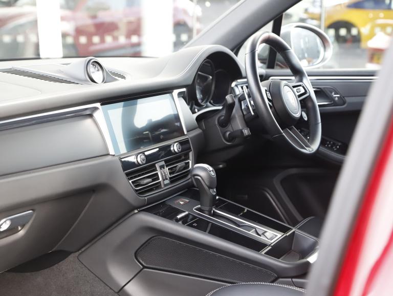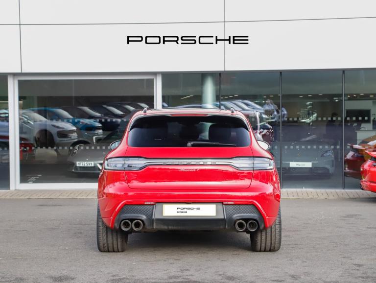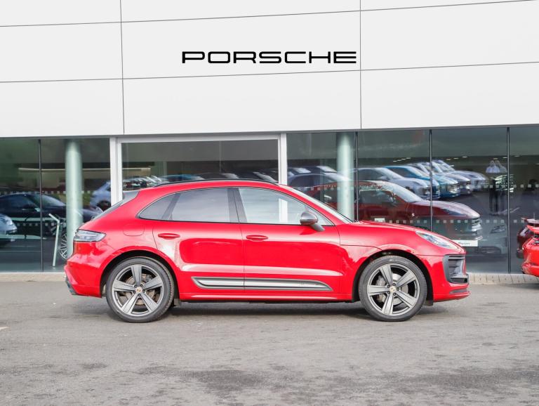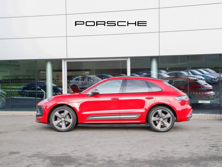 For sale: Porsche Macan 2.0T T SUV 5dr Petrol PDK 4WD Euro 6 (s/s) (265 ps), 2022, finished in striking Red. This exceptional SUV combines the renowned Porsche driving experience with a comprehensive specification and distinctive styling.The exterior features 21-inch Alloy Wheels in Exclusive Design Sport Vesuvius Grey, complemented by roof rails in aluminium painted black and privacy glass for enhanced aesthetics and practicality. The panoramic roof system provides an airy atmosphere for all occupants, while the tinted LED main headlights with Porsche Dynamic Light System (PDLS) and tinted LED taillights ensure optimal visibility and a modern appearance. The sports exhaust system with black tailpipes adds a purposeful finish.Step inside to find a refined interior, highlighted by adaptive sports seats with an 18-way memory package and Porsche crest headrests, offering tailored comfort and support. The front centre console is adorned with an armrest bearing the Porsche crest, adding an exclusive touch. Comfort access allows for convenient entry and exit, while the automatically dimming exterior and interior mirrors further enhance convenience and driving experience.Entertainment and sound quality are delivered by the BOSE