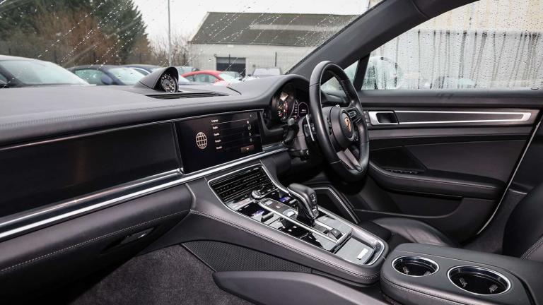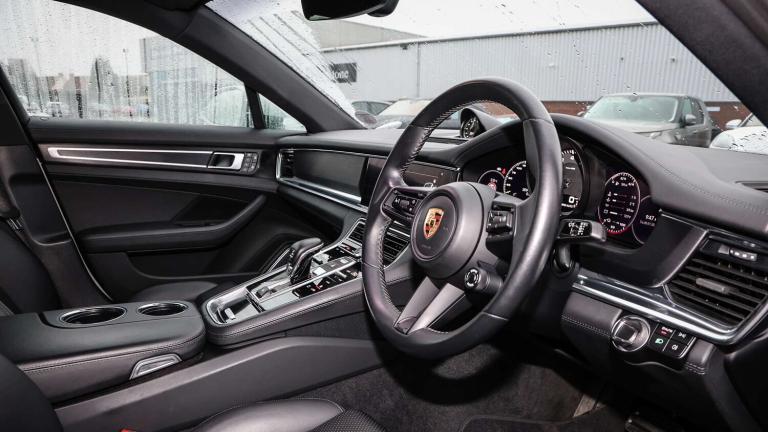 41 Seats (5KA), 21-inch Panamera Exclusive Design wheels painted in Black (high-gloss) (44A), Adaptive cruise control (8T3), Deletion of model designation (0NA), Deletion of Acid Green finish on brake calipers (5EK), ParkAssist including Surround View (8A4), Rear-axle steering including Power steering Plus (0N5), SportDesign package with SportDesign sideskirts (2D1), Tinted LED main headlights with Matrix Beam including Porsche Dynamic Light System Plus (PDLS Plus) (8JU)