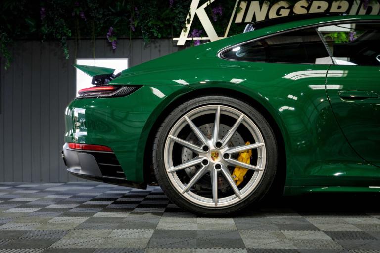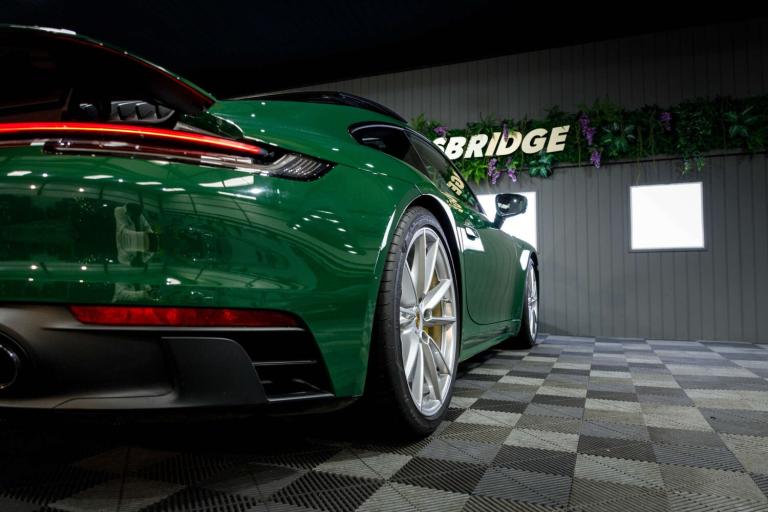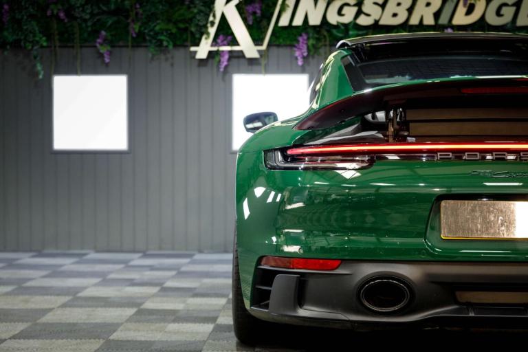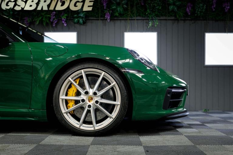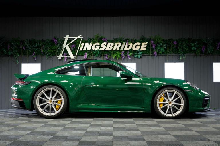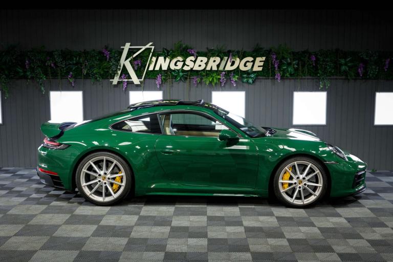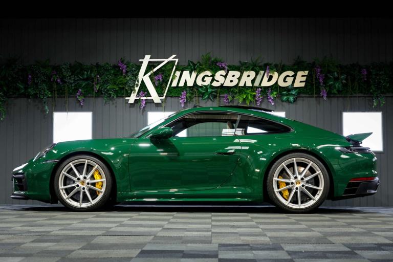 Stunning 2023 Porsche 911 992 Carrera GTS in Paint to Sample Irish Green, a legendary Porsche colour. Equipped with the venerable eight-speed PDK gearbox (which is arguably the one to have for daily use) and having covered just 11,000 miles from new it still presents as a fresh example that has clearly been cherished in its short time away from the factory. So new is it, in fact, that it's yet to have its inaugural MOT but with a recent Porsche main dealer service under its belt it has obviously been cherished by the vendor who is the only registered keeper, having owned the car from new. Presenting beautifully inside and out and reportedly running exactly as expected this 992 Carrera GTS represents a little-used and really rather impressive example of the marque.This exceptionally high-specification, one-off example offers a rare opportunity to own a 992 GTS that stands apart from anything else on the market.Cost options includes:Paint to Sample Irish Green, BOSE Surround Sound System, Lane Change Assist, Electric Folding Mirror+Crtsy Lightg, Porsche Crest Embossed On Headrests, Electric Slide/Tilt Glass Sunroof, Ioniser, Front Axle Lift System, Heated GT Sports steering wheel, Steering Coloum Casing In Leather, Porsche ceramic composite brake, Rear axle steering, Black and Mojave Beige two tone, Park Assist-Front/Rear+Surround View, Adaptive Sprt St Pls-18Way Elec+Mmry, Light Design Package, PORSCHE Logo LED Door Courtesy Lights, Sport Design Side Skirts.473bhp, 3.0-litre twin-turbo flat-six engineEight-speed PDK dual clutch automatic gearboxRear-wheel drive0-60mph in 3.4 seconds194mph top speedWe are rarely beaten on finance. We work with all major high-street lenders alongside a carefully selected panel of specialist providers to secure the most competitive package tailored to your circumstances. If you choose to arrange finance elsewhere rather than through Kingsbridge, a £599 administration fee will apply to cover processing and compliance documentation.Ask about our full paint correction service and Gyeon ceramic protection packages. We offer bespoke preparation options including paint protection film (PPF), vehicle wrapping, trackers, dash cams and Ghost immobilisers.A £199 Vehicle Assurance Charge applies to all vehicles. This may be included within the advertised price or added separately depending on the platform you have seen the vehicle on.Specification Notice: Vehicle specifications listed may differ from the actual specification fitted. If any feature is essential to your purchase decision, you must confirm this with us prior to committing to buy.