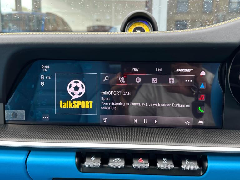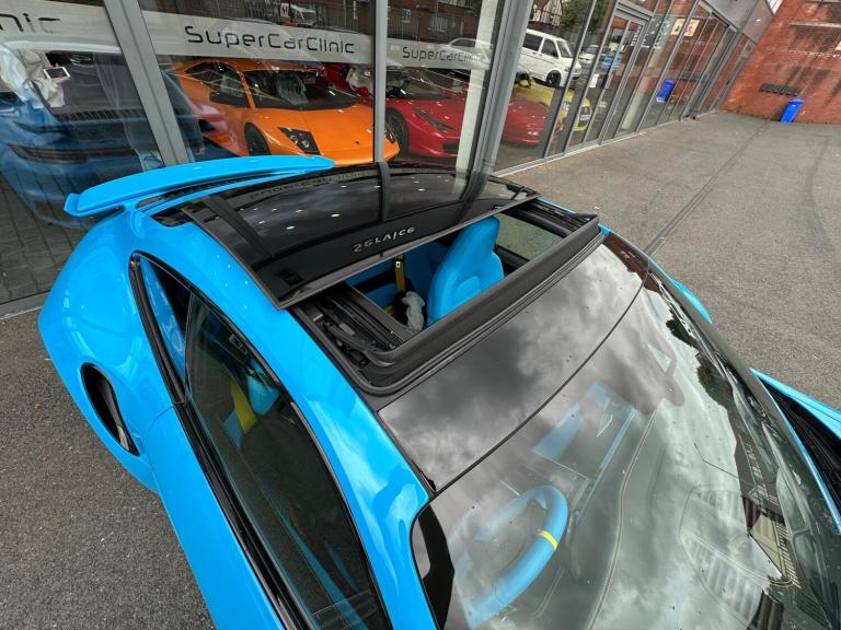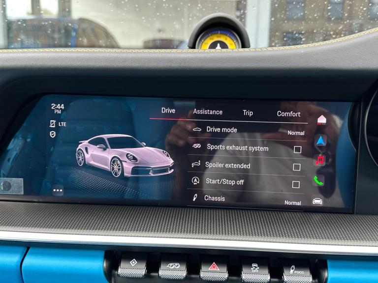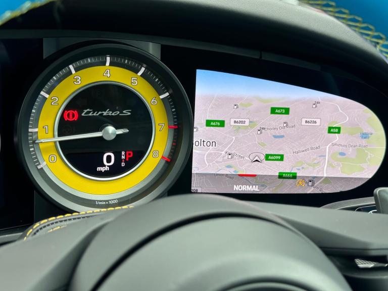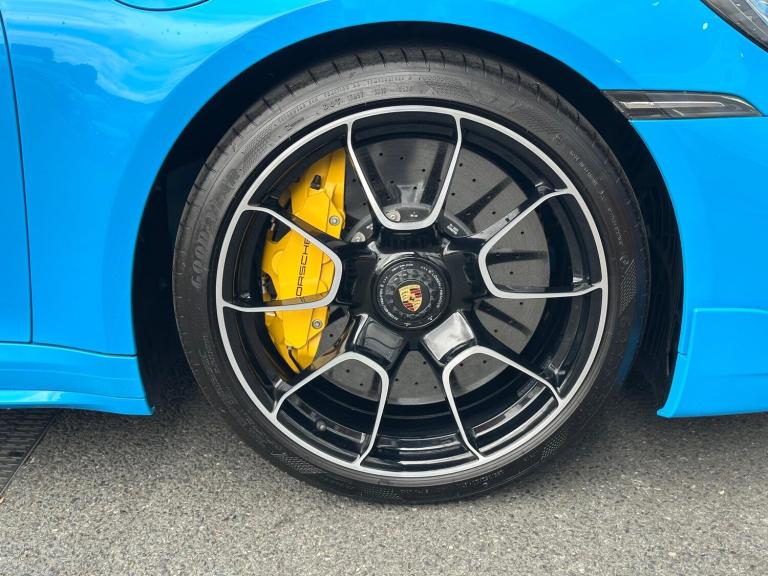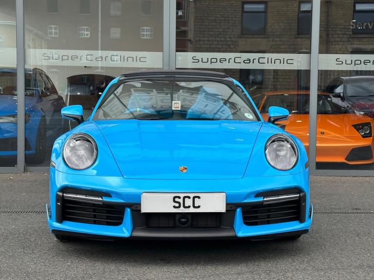 WE ARE DELIGHTED TO OFFER YOU THIS PORSCHE 911 TURBO S FINISHED IN A SPECIAL PAINT TO SAMPLE RIVIERA BLUE, COMPLIMENTED WITH HEATED AND COOLING RIVIERA BLUE INTERIOR, HUGE SPEC INCLUDING PANORAMIC GLASS SLIDING ROOF + LIGHT DESIGN PACKAGE + EXCLUSIVE LEATHER INTERIOR + SPORTDESIGN PACKAGE + SPORTS EXAUST SYSTEM + 20/21'' 911 TURBO S EXCLUSIVE DESIGN WHEELS + REV COUNTER IN RACING YELLOW + SPORT CHRONO STOPWATCH + PDLS PLUS + PARKASSIST INCLUDING SURROUND VIEW + ADAPTIVE CRUISE CONTROL + BOSE SPEAKERS + MATRIX BEAMS + GLOSS TRIMSASK FOR FINANCE PACKAGESAPPOINTMENTS ONLY