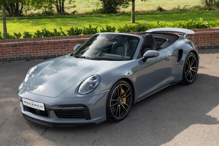 We're proud to offer this 2023/73 Porsche 911 Turbo S Cabriolet finished in Arctic Grey with Black Leather interior. This tastefully specced example benefits from a frontend coverage of Xpel Paint Protection Film (PPF). A full options list of this vehicle follows below which includes Burmester Premium Audi, Porsche Dynamic Light System Plus (PDLS+) and adaptive cruise control.Arctic Grey - Special Paint (£2,207 option)Black Extended Leather interior20/21-inch Turbo S wheelsPorsche Ceramic Composite Brakes (PCCB)Burmester Premium AudioMatrix LED headlights with Porsche Dynamic Lights System Plus (PDLS+)Exclusive Design taillightsCarbon fibre interior packagePark Assist including Surround ViewHeated front Adaptive Sports Seats Plus, electrical 18-way with memory packageHeated GT sports steering wheel in leatherPorsche Design ClockElectric folding door mirrorsPorsche crest embossed to centre consolePorsche crest embossed to head restsAdaptive Cruise ControlLane AssistanceSilver Porsche + Turbo S emblemsSilver exhaust tail pipes