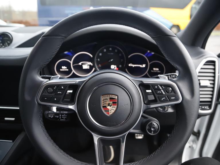 For sale: 2023 Porsche Cayenne 2.9T V6 S Platinum Edition SUV 5dr Petrol TiptronicS 4WD Euro 6 (s/s) (440 ps), presented in elegant White with a refined SUV body style. This 5-door, 5-seat vehicle combines practicality with Porsche’s renowned engineering, offering outstanding driving dynamics and a sophisticated presence on the road.This particular Cayenne benefits from an impressive specification, featuring a host of desirable factory options designed to enhance comfort, convenience, and driving enjoyment. The 18-way Adaptive Sports Seats provide exceptional comfort and support, with full electric adjustment to suit individual preferences. For added versatility, the 20-inch collapsible spare wheel is included. Adaptive Air Suspension, incorporating Porsche Active Suspension Management (PASM), ensures a composed and controlled ride across a variety of driving conditions.Convenience is further emphasised by the electrically extending towbar system, providing flexibility for towing requirements. The Adaptive Cruise Control assists in maintaining a safe and relaxed drive, while ParkAssist with Surround View and Porsche Logo LED Door Courtesy Lights add both practicality and a touch of distinction.The interior is both inviting and functional, with heated seats for both front and rear occupants, ensuring comfort during colder weather. The Sport Chrono Package with Porsche Subsecond Design Clock adds a unique sporting touch, complemented by the SportDesign Package in Black High Gloss, which enhances the vehicle’s exterior aesthetics. The Sports Exhaust System in Black offers an expressive note, while the tinted LED taillights contribute to the vehicle’s contemporary appearance.Additional features include rear side airbags for enhanced safety, a head-up display to keep essential information in the driver’s line of sight, and tinted LED main headlights incorporating the Porsche Dynamic Light System (PDLS) for optimal visibility.Options: 18-way Adaptive Sports Seats (Electric), 20in Collapsible Spare Wheel, Adaptive Air Suspension including Porsche Active Suspension Management (PASM), Adaptive Cruise Control, Airbags – Rear Side, Electrically Extending Towbar System, Head-Up Display, ParkAssist Including Surround View, Porsche Logo LED Door Courtesy Lights, Seats – Heated Front and Rear, Sport Chrono Package with Porsche Subsecond Design Clock, SportDesign Package in Black High Gloss, Sports Exhaust System in Black, Tinted LED Taillights.Key features: